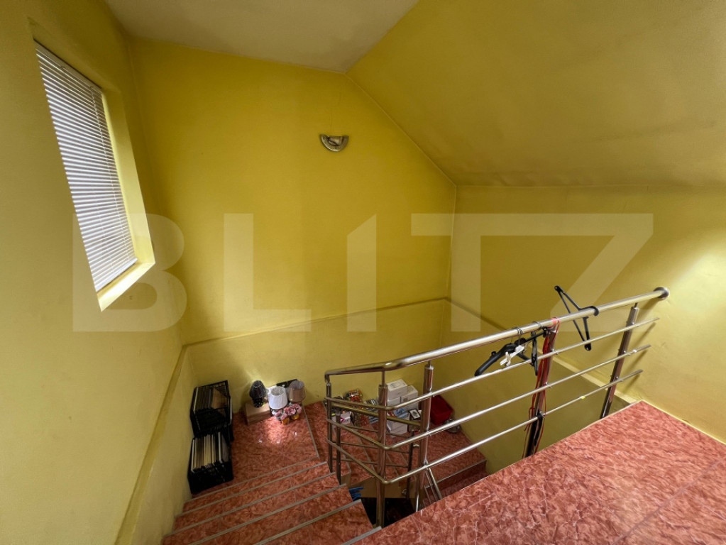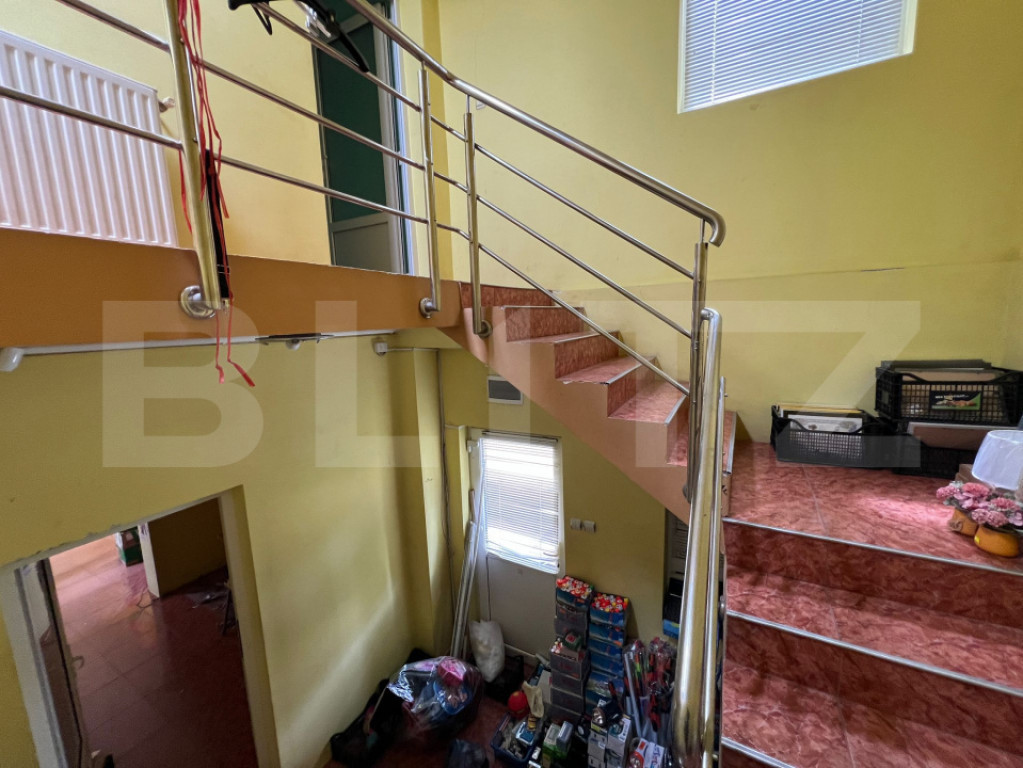 Blitz va propune o proprietate cu 2 camere ???? localizare: situată lângă complexul comercial Rachel, zonă cu vad comercial excelent ???? Suprafață teren: 610 mp, cu front generos de peste 25 m ???? Acces și exterior: curte pavata, cu acces auto direct ????️ An construcție: 2004 ???? Dependințe: beci subteran ???? Configurație actuală Parter (55 mp): spațiu comercial open‑space – ideal pentru magazin, birouri, cabinet, showroom etc. Mansardă: apartament funcțional cu 1 dormitor, balcon, bucătărie și baie Subsol: beci – util pentru depozitare sau arhivă ✅ Avantaje cheie Flexibilitate maximă: perfectă pentru a combina activitatea profesională la parter și locuirea la mansardă Vad comercial: poziționare excelentă în zonă cu trafic, lângă Complex Rachel Confort complet: amplasare spre zonă activă, utilități și acces auto Teren propriu generos: ideal pentru parcări, terasă, amenajări peisagistice ℹ️ Utilizare recomandată PUNTE DE INTRARE PENTRU INVESTITORI: combinație birouri + locuință în aceași proprietate Proprietatea este pe firma si pretul este cu TVA inclus. Poate fi achizitioanata si pe persoana juridica cu TVA cu taxare inversa. ???? Contact cvizionări și detalii: Pentru informații, acte, tur ghidat sau simulare de amenajare, nu ezitați să ne contactați! Cod ofertă / ID BLITZ: P148964 Id intern: P148964