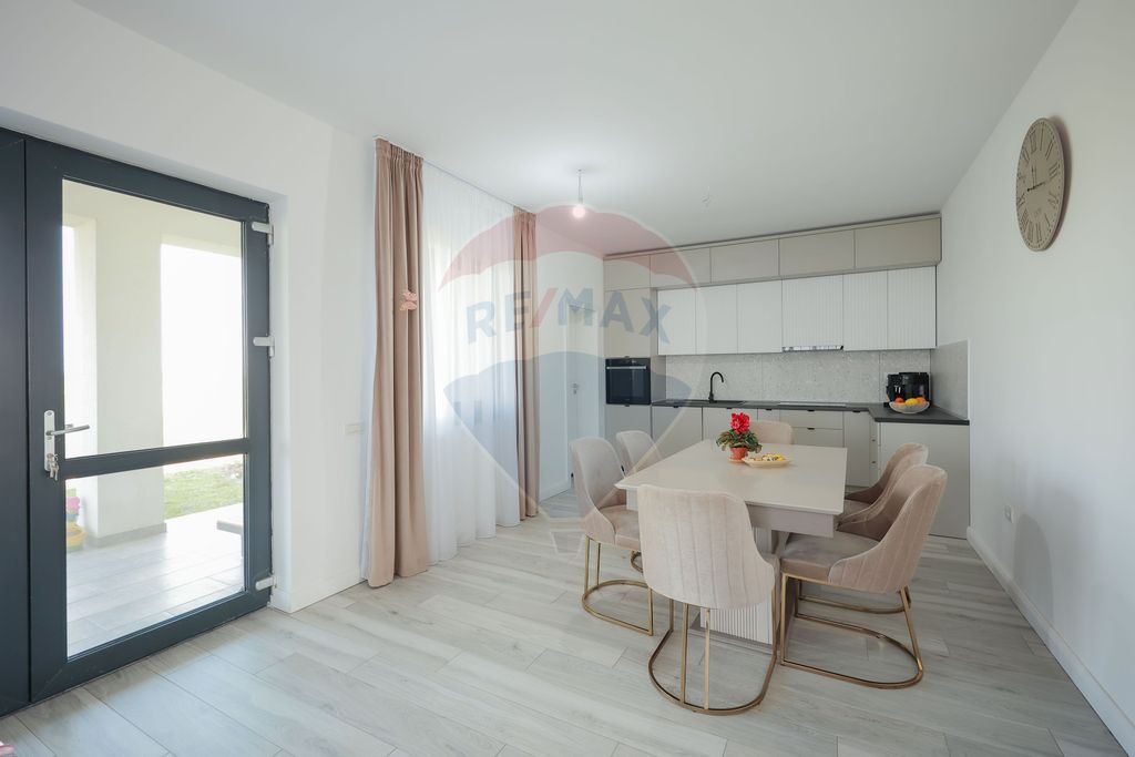 Vă propunem spre vânzare o casă modernă, construită în anul 2024, situată într-o zonă liniștită din Livada de Bihor, ferită de agitație și zgomot. Imobilul este desfășurat pe un singur nivel (cu posibilitate de mansardare) și are o suprafață utilă de 125 mp (175 mp suprafață construită), amplasat pe un teren de 500 mp, împrejmuit. Casa este compartimentată astfel: - 1 living spațios, open-space, luminat natural prin ferestre mari. Spațiul de zi este gândit pentru familie - zona de relaxare se îmbină armonios cu diningul și bucătăria. - 3 dormitoare care oferă intimitate și confort, dormitorul matrimonial având baie proprie - 2 băi, una dotată cu duș și una cu cadă, finisate modern - 1 dressing de 10 mp, de unde se face accesul către pod - 1 cămară pentru depozitarea alimentelor - 1 cameră tehnică - terasă acoperită cu suprafață de 17 mp Detalii tehnice: -Încălzire în pardoseală prin 2 pompe de căldură -Curent trifazic -Puț forat la 70 m -Fosă septică cu drenaj -Poartă auto Proprietatea se vinde complet mobilată și utilată, fiind ideală pentru o familie care își dorește confort și un cămin nou. Pentru detalii suplimentare și programarea unei vizionări, vă stăm la dispoziție.