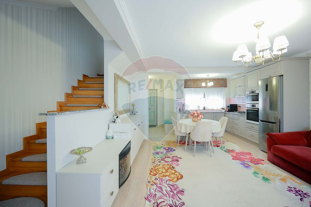 Vă prezentăm o proprietate deosebită tip townhouse, situată în cartierul Beverly Hills din Sânmartin, o zonă recunoscută pentru liniște, aer curat și proximitatea față de natură, la doar câțiva pași de pădurea din Băile Felix. Casa are o suprafață utilă de 105 mp, dispusă pe trei nivele și este compartimentată astfel: - 3 dormitoare luminoase - 2 băi complet utilate - 1 Bucătărie open-space, perfect integrată cu zona de living - 1 Cameră tehnică Proprietatea se remarcă prin finisaje de lux, materiale de calitate superioară și un design contemporan atent ales. Casa se vinde complet mobilată și utilată, exact așa cum apare în fotografii, fiind gata pentru mutare imediată. Un alt avantaj major al proprietății îl reprezintă izolația suplimentară de înaltă calitate, alături de roletele orizontale exterioare, care asigură un excelent confort termic și fonic. Datorită acestor dotări, casa beneficiază de costuri reduse la întreținere, menținând o temperatură optimă pe timpul iernii și răcoare plăcută vara, ceea ce se reflectă în facturi semnificativ mai mici la utilități. La exterior, beneficiați de o terasă mobilată, ideală pentru relaxare, și o grădină cocheta și intimă, perfectă pentru momentele petrecute în aer liber. În fața casei sunt disponibile 2 locuri de parcare proprii, un avantaj important pentru confortul zilnic sau pentru oaspeți. Proprietatea este situată într-o zonă liniștită, la 5 minute de Oradea și aproape de stațiunile balneare din Băile Felix, fiind potrivită atât pentru locuință, cât și pentru investiție. O casă care îmbină eleganța, confortul și natura într-un cadru exclusivist. Pentru mai multe informații sau pentru a programa o vizionare, vă stau la dispoziție.