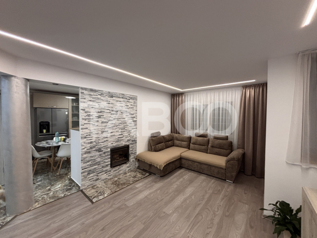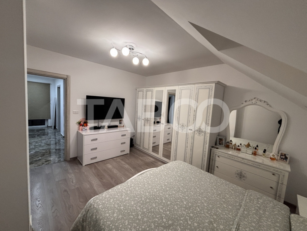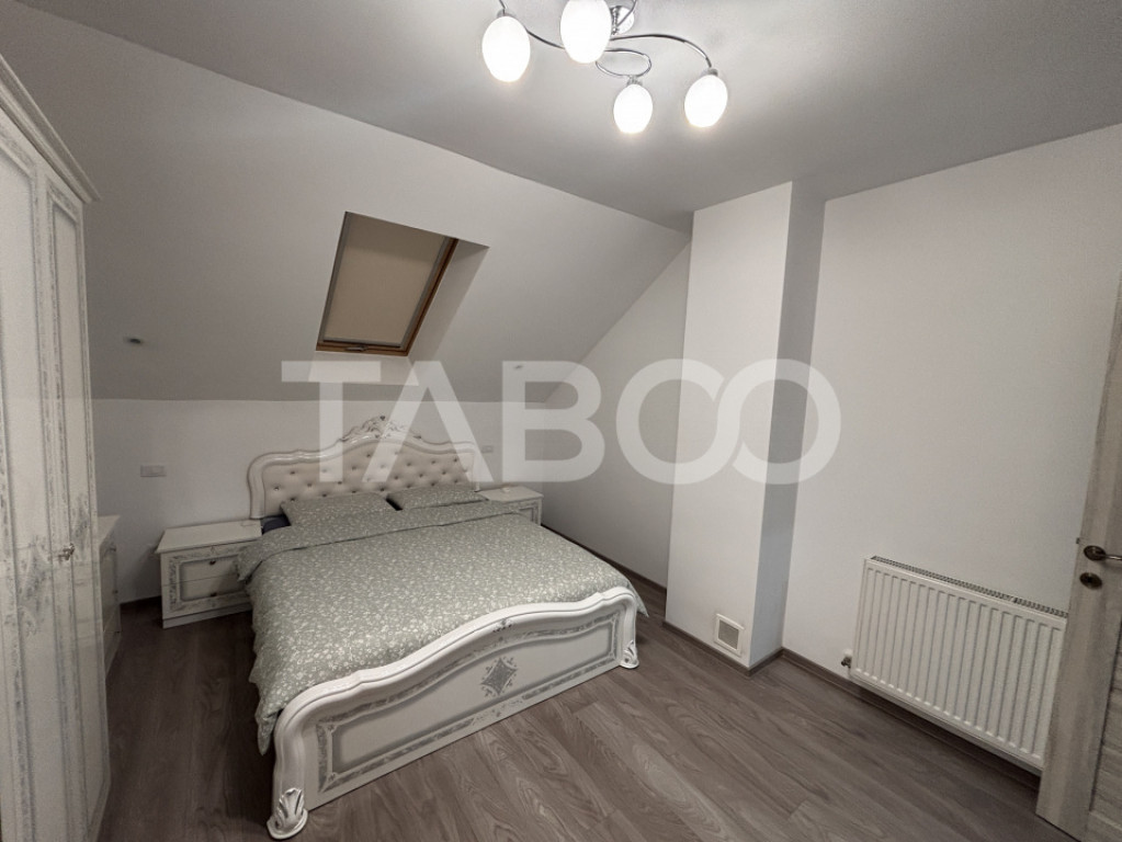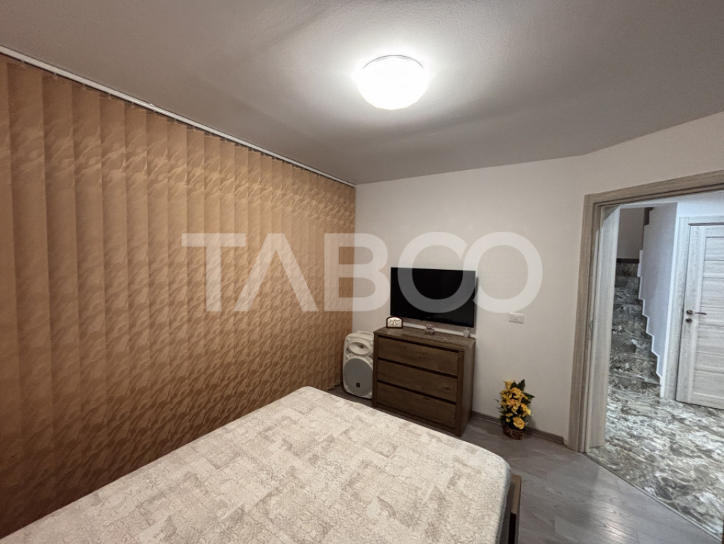 Iti doresti o casa intr-o zona exclusivista ce iti ofera confortul si utilitatile de care ai nevoie? Aceasta casa de vanzare cu 5 camere in zona Terezian, Sibiu este cea mai buna alegere. Casa a fost construita in anul 2007, renovata in 2024. Terenul casei are o suprafata totala de 123 mp, iar suprafata construita de 150 mp. Suprafata utila a casei este de 122 mp, de tip triplex, cu un regim de inaltime Parter + mansarda. Structura cladirii este din caramida, are sistem de incalzire cu termoficare, centrala proprie, calorifere, semineu. Casa este complet mobilata si utilata, ea fiind compartimentata :