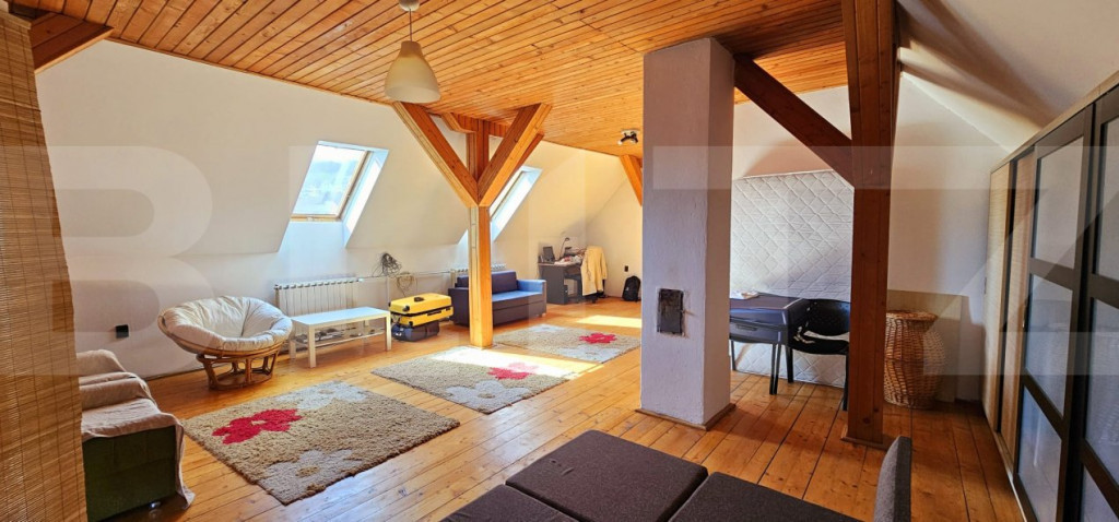 Blitz va propune spre vânzare o proprietate versatilă, perfectă atât pentru o familie numeroasă, cât și pentru diverse activități comerciale. Caracteristici generale: Suprafață utilă: 300 mp Structură: Parter + Etaj + Mansardă An construcție: 1995 Construcție solidă din cărămidă Teren: 302 mp, frumos amenajat, cu posibilitate de extindere cu încă aproximativ 200 mp Compartimentare: Fiecare nivel dispune de 2 camere, 1 bucătărie, 1 baie și camara (mansarda nu are bucătărie) Livingurile se pot compartimenta cu ușurință pentru a obține camere suplimentare – ideal pentru amenajarea unei pensiuni Dotări și finisaje: Încălzire centralizată cu gaz și cazan pe lemne Ferestre din lemn stratificat de calitate superioară (Fenestela) Acoperiș recent verificat și recondiționat Gard nou din lemn de brad Se vinde complet mobilată sau nemobilată, în funcție de preferințele cumpărătorului Această proprietate reprezintă o oportunitate excelentă de investiție datorită versatilității sale, aproape de spitalul judetean. Pentru detalii suplimentare sau vizionări, vă stau la dispoziție. Cod ofertă / ID BLITZ: P144643 Id intern: P144643