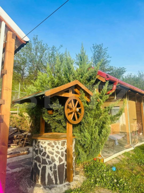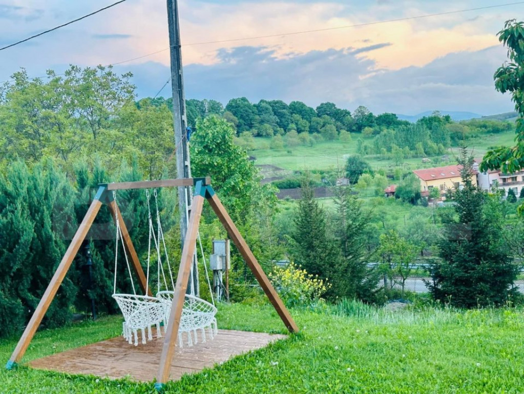 Blitz va propune spre achizitie o casa situata in Aghires, situata intr o zona foarte linistita, ideala pentru locuit, sau pentru inchiriere in regim hotelier! Imobilul este amplasat pe o suprafata de 2000mp, avand un front generos si accesul facil Acesta este dotat, cu panouri solare de 10kw, centrala termica pe lemn. Compartimentata astfel 6 camere de locuit, 2 dintre ele cu balcon 2 holuri 2 bai 1 bucatarie Toate sunt mobilate si utilate! Imobilul despune si de un spatiu de joaca amenajat pentru copiii, ciubar si o piscina cu sistem de incalzire O terasa exterioara acoperita, cu bbq si zona de luat masa. Pentru mai multe detalii, nu ezitati sa ne contactati! Cod ofertă / ID BLITZ: P145774 Id intern: P145774