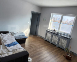 -living spațios cu șemineu funcțional, ce poate fi utilizat pentru încălzirea locuinței pe timpul iernii