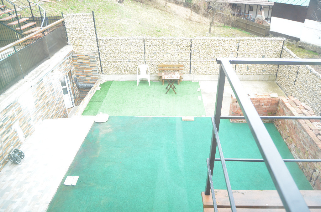 Teren: 186 mp, o suprafață de teren bine impartita avand si o terasa cu o panorama frumoasa catre Castelul Cantacuzino si Muntii Baiu, ceea ce asigură intimitate și spațiu verde.