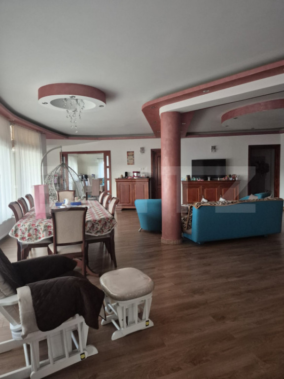 Casă spațioasă de locuit sau pensiune – Corunca, Zonă de Vis, 3200 mp teren Vă prezentăm spre vânzare o proprietate impresionantă situată în Corunca, într-o zonă liniștită și ideală pentru familii sau investiții turistice. Accesul se face ușor, pe stradă asfaltată, la doar 300 m de E60, ceea ce oferă vizibilitate și acces rapid către Târgu Mureș, Sovata, Praid sau zona medicală. Cu o suprafață desfășurată de 610 m², plus un pod locuibil de 75 m², imobilul se remarcă prin spații generoase, compartimentare versatilă și dotări complete. Regimul de înălțime D+P+E+M permite utilizarea atât ca locuință multifamilială, cât și ca pensiune, centru de recuperare, afterschool sau sediu de firmă cu locuire. Terenul spectaculos de 3200 m² include o livadă de pomi fructiferi, spații verzi ample și zone dedicate relaxării. Dotări generale Centrale termice pe gaz și lemn Panouri solare Anexe pe structură de lemn Copertină pentru mașini Terasă generoasă + ciubăr Multiple spații de depozitare Camere cu baie proprie (ideal pentru pensiune) --- Compartimentare detaliată Parter Living generos 50 mp Bucătărie separată 2 dormitoare cu baie proprie Birou + cameră hobby / birou secundar Toaletă serviciu Spălătorie Terasă mare cu 2 toalete exterioare Ciubăr Cameră tehnică Etaj Living de 50 mp Bucătărie complet funcțională 3 dormitoare, fiecare cu baie proprie Un dormitor suplimentar O baie de serviciu 3 terase cu priveliști deschise-- Mansardă 3 camere 1 baie cu duș Spațiu ideal pentru oaspeți, adolescenți sau zonă de recreere. --- Subsol (Demisol) Garaj dublu Cameră tehnică (centrală) 1 dormitor cu baie și dressing Cămara Multiple spații de depozitare --- Teren și exterior Suprafață teren: 3200 mp Livadă matură de pomi fructiferi Spații largi pentru joacă, relaxare sau amenajări ulterioare Anexe utile pentru depozitare sau activități recreative --- O proprietate versatilă, perfectă pentru familie sau investiție Cu camere multiple, băi proprii, spații comune generoase și o structură concepută pentru confort pe termen lung, această casă din Corunca este ideală pentru: pensiune sau agropensiune, locuință multifamilială, business + locuire, centru de recuperare / wellness, familie numeroasă care își dorește spațiu, liniște și natură. Un imobil complet, amplasat într-o zonă deosebită, care oferă atât confort cât și oportunitate de dezvoltare. Cod ofertă / ID BLITZ: P159838 Id intern: P159838