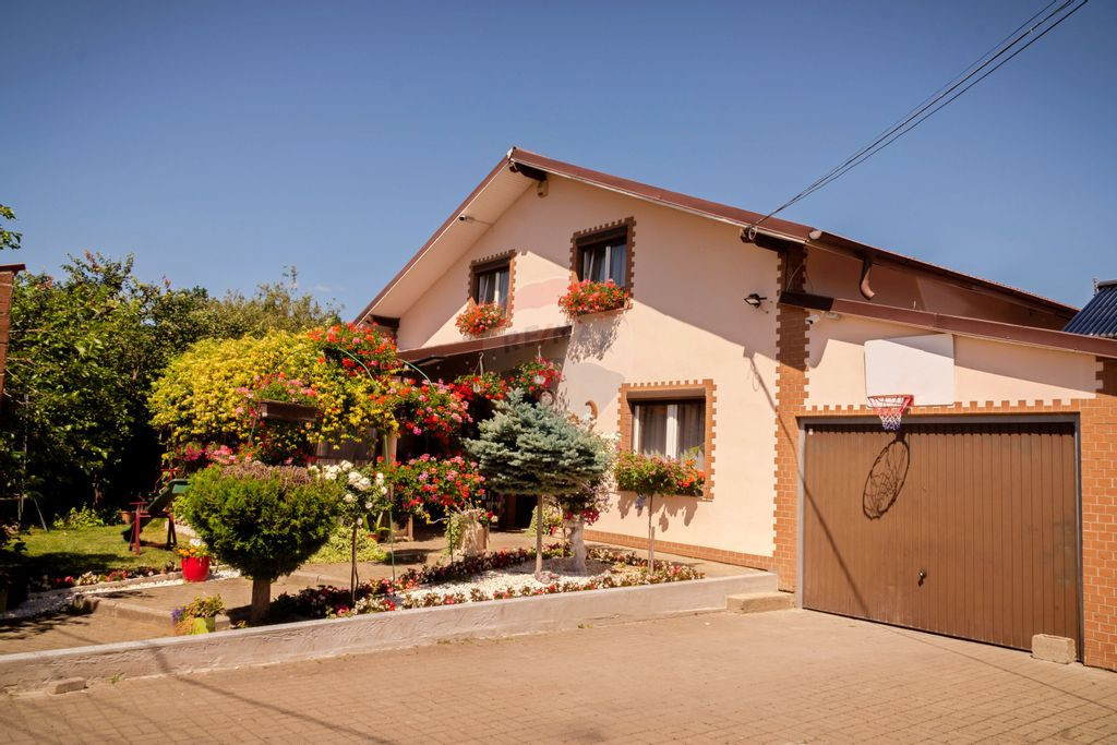 La exterior, casa este înconjurată de o curte superbă, plină de flori frumos mirositoare, ce transformă fiecare anotimp într-un tablou viu colorat. Aici, fiecare colț respiră bucurie, natură și echilibru.