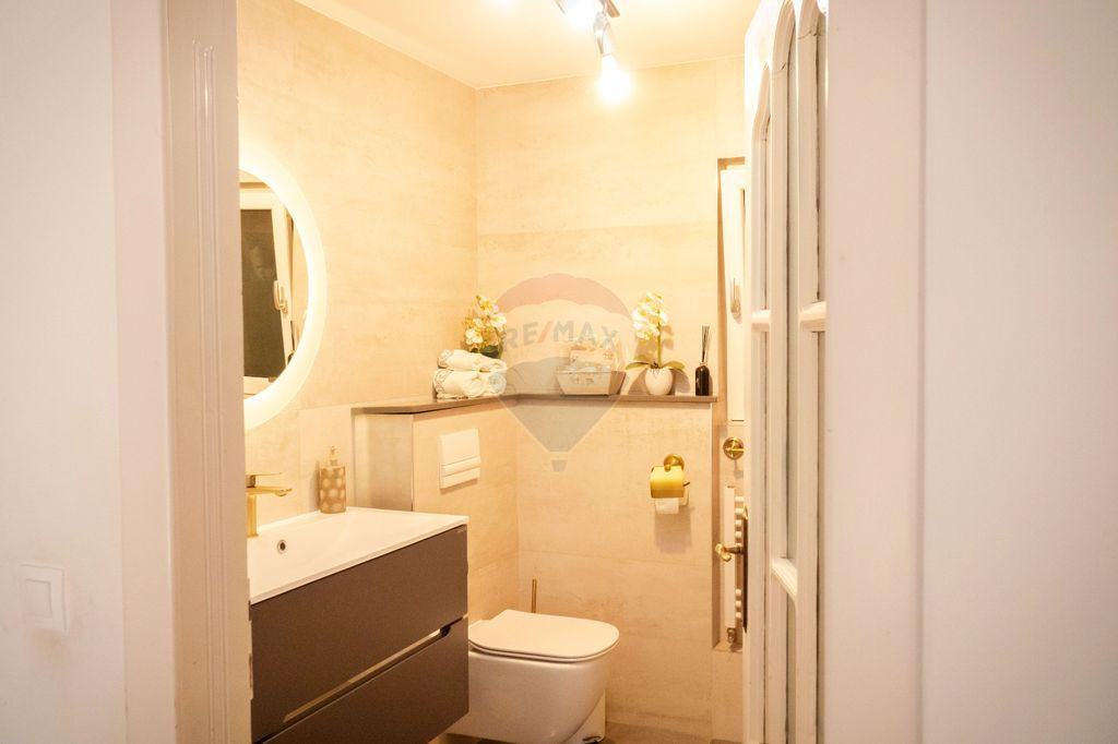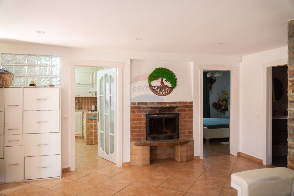 Parterul este gândit pentru momentele petrecute în familie: zona de living te întâmpină cu un șemineu cochet, ideal pentru serile reci, în timp ce bucătăria, realizată la comandă, este atât funcțională, cât și estetică – un spațiu în care gătitul devine o adevărată plăcere. Tot aici se află și o baie elegantă, precum și un dormitor, perfect pentru oaspeți sau pentru cineva care preferă să evite urcatul scărilor.