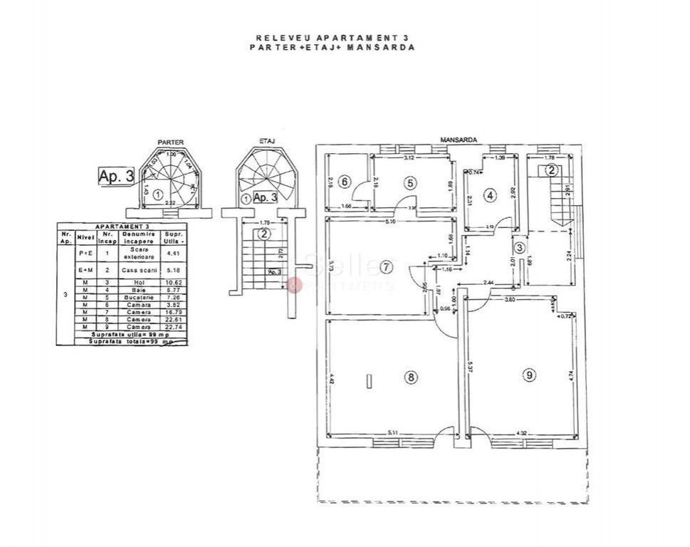 LOCALIZARE: Acest imobil este situat in Brasov, in zona Dambul Morii. COMPARTIMENTARE: Cu regim de inaltime P+E+M, vila este impartita cadastral in 3 apartamente, avand urmatoarea compartimentare: APARTAMENT 1 (PARTER), are destinatia de birouri, avand acces separat: - holul de acces; - doua birouri; - bucatarie; - baie, dotata cu aerisire naturala si cabina de dus; APARTAMENT 2, este inclus in circuitul turistic, avand toate avizele necesare, precum si certificat de clasificare cu 3 stele: PARTER: - holul de acces; - living-ul, care se intinde pe o suprafata generoasa, avand acces la zona de dining; - bucataria, aceasta fiind mobilata si dotata integral; - zona depozitare alimente; - baia, cu aerisire naturala si cabina de dus; ETAJ: Alocat zonei de noapte, acesta detine: - 4 dormitoare, 2 dintre ele cu baie proprie, iar celelalte fiind deservite de o baia ce este amplasata pe hol, toate avand acces la terasa; - terasa generoasa, cu o priveliste deosebita spre Masivul Postavarul si Vf. Piatra Mare; APARTAMENT 3 (MANSARDA), cu acces separat este compus din: - holul de acces; - 2 dormitoare, ambele beneficiind de acces la terasa; - baia, cu aerisire naturala si cada; - o camera de zi, ce poate fi folosita ca spatiu de relaxare si hobby; - bucataria, mobilata si dotata complet, in aceasta fiind integrata si o camara; - terasa generoasa, cu o priveliste deosebita spre Masivul Postavarul si Vf. Piatra Mare; DETALII TEHNICE: - constructie realizata pe cadre din beton armat, din caramida, cu termosistem BCA; - acoperiș țiglă Bramac; - centrala termica pe lemne 96 kw; - centrala termica pe gaz 40 kw, Viesmann Vitodens 100; - vase stocare A.R 1800 L; - sistem dedurizator apă; - puț forat la 70 m; - fosă septică 6000l. DOTARI: - curte cu perisagistica realizata, cu loc de joaca pentru copii, avand o suprafata de 576 mp; - zona de barbeque; - magazie de lemne; - parcare pavata in curte, pentru aproximativ 4-5 masini; Tranzactionarea proprietatii se va face cu mobilierul aferent prezentei ofertari. Aceasta proprietate poate fi achizitionata atat pentru locuinta, cat si in scop investitional, aceasta fiind deja introdusa in circuitul turistic. IMPREJURIMI: Imobilul este situat intr-o zona retrasa de vile, la doar 15 minute distanta de Centrul Vechi al Brasovului. FORMA ACHIZITIONARE: Se accepta plata prin accesare credit. NOTA: Informatiile prezentate reflecta situatia reala a proprietatii, fara a constitui o oferta contractuala. Aceste date au fost obtinute verbal, de la titularul de drept al imobilului. Structura acestei prezentari nu poate fi reprodusa, fara acordul scris al The Seller and Partners.