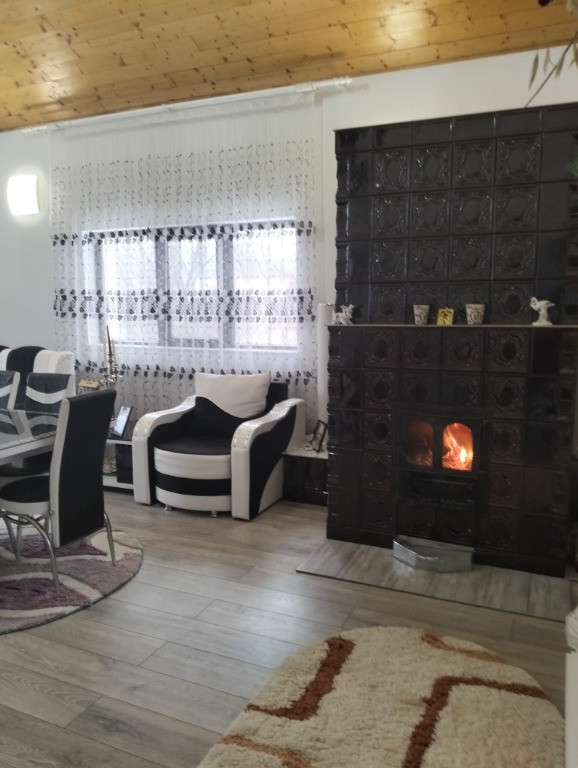 Se vinde casa in Malaia, Valcea, parter + etaj, formata din 3 dormitoare spatioase, living, dining, bucatarie, 2 bai, camera tehnica, mobilata si utilata, izolata complet ,materiale de calitate folosite la constructia casei. In spatele casei se gasesc foisoare cu magazie si loc pentru gratar, la intrarea in curte se afla un garaj si camera de depozitare, loc de parcare spatios pentru 5 masini, poarta actionata electric cu motor, sistem de supraveghere 24 7 cu camere video. Incalzirea se realizeaza prin soba teracota cu serpentina tip centrala ce incalzeste toate caloriferele din casa, consum minim de lemne si confort termic absolut. Pentru mai multe informatii va rugam sa ne sunati la numarul de telefon din anunt.