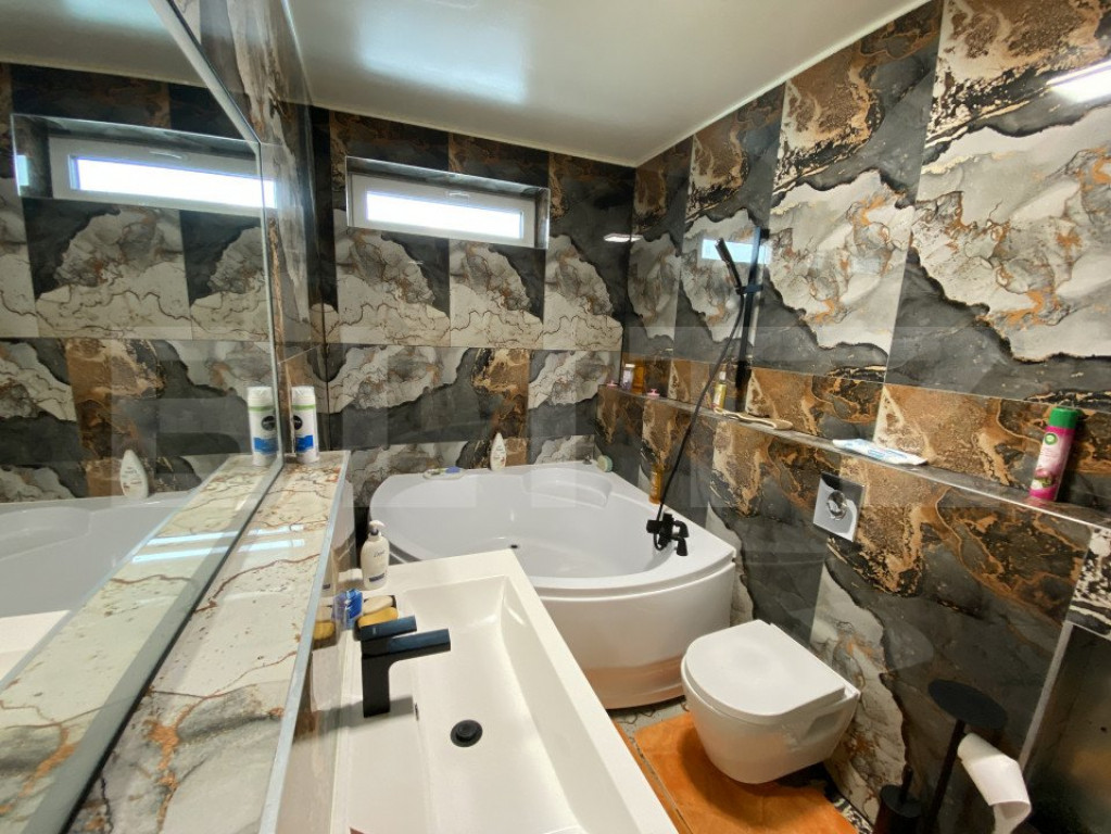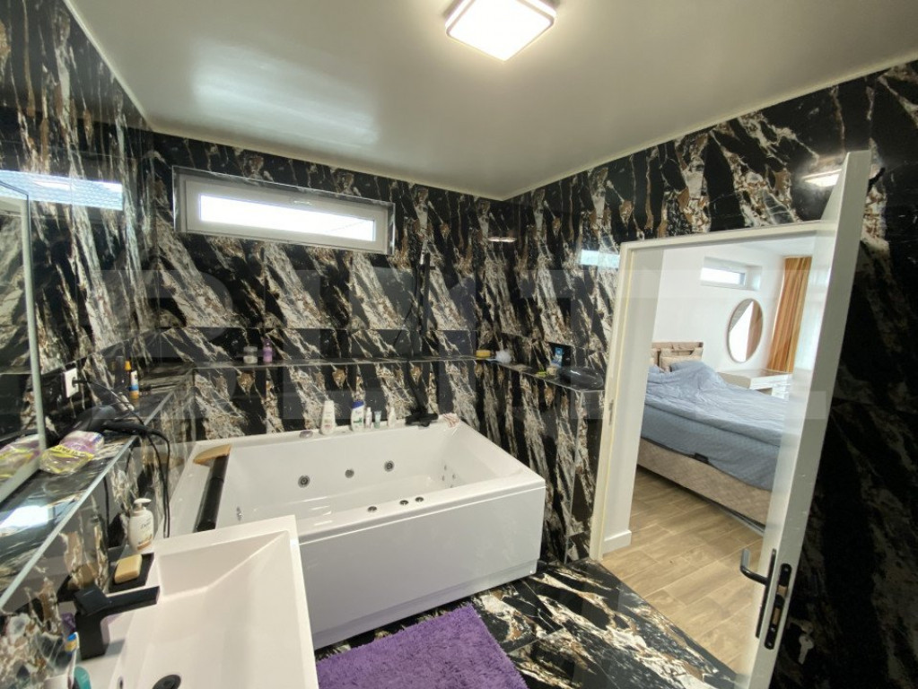 Blitz ofera spre vanzare casa individuală P+1E, anul construcției 2023, cu o suprafață utilă de 200 mp utili cu terasă deasupra casei cu o suprafață de 100 mp si 500 mp teren. Casa este situata intr-o zona linistita de case, dispune de toate utilitatile prezente, gaz, apa, curent. Casa este impartita in felul urmator : parter cu living si bucatarie, baie, birou. Etaj cu 3 dormitoare, dormitorul matrimonial cu baie proprie (cada cu hidromasaj, aeromasaj si cromoterapie), plus o baie situata intre dormitoare. Beneficiaza de sistem de supraveghere video. Este izolata exterior cu polistiren de 15 cm STO, etanseitate terasa exterioara 30cm STO (polistiren 15cm+15 cm incrucisat), tamplarie aluminium Welthaus. Marea majoritate a materialelor au fost aduse din Franta si sunt de o calitate superioara. Casa se vinde complet utilata si mobilata. Pentru mai multe detalii, contactati-ne cu incredere! Cod ofertă / ID BLITZ: P134896 Id intern: P134896