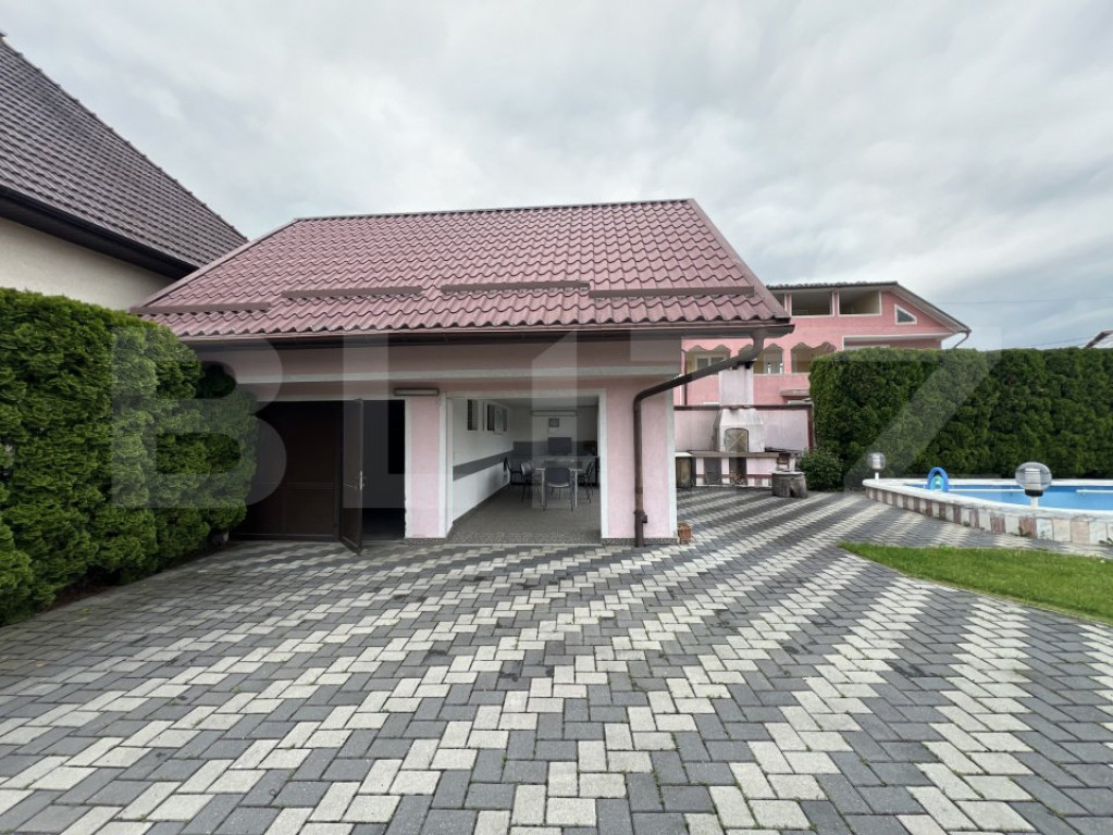 Blitz oferă spre vânzare o vilă impresionantă situată pe drumul principal național DN17 în Bistrița, la doar 5 minute distanță de Bistrița Retail Park și de alte puncte de interes, precum magazine și supermarketuri. Această proprietate reprezintă o oportunitate excelentă atât pentru investiții rezidențiale, cât și comerciale. **Detalii:** Mobilata si utilata * Suprafața terenului: 1000 mp (10 ari) * Suprafața construită a casei: 504 mp * Suprafața utilă: 420 mp * Compartimentare pe mai multe nivele (demisol, parter și 2 etaje) * 7 camere, dintre care 5 dormitoare complet mobilate și utilate * Living spațios la parter * Birou * 5 băi * 3 bucătării * 4 balcoane și o terasă * Curte cu piscină * 2 garaje pentru parcare * Terasă în curte cu grătar **Posibilități de utilizare:** Proprietatea este perfectă pentru investiții în afaceri de cazare, cum ar fi o pensiune sau un azil pentru vârstnici, datorită compartimentării generoase și facilităților deosebite. Curtea cu piscină și grătar adaugă un plus de atractivitate pentru viitorii clienți. Dacă ești interesat să afli mai multe detalii sau să programezi o vizionare, nu ezita să ne contactezi! Cod ofertă / ID BLITZ: P145037 Id intern: P145037