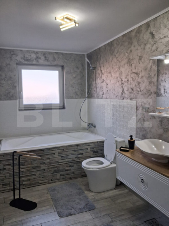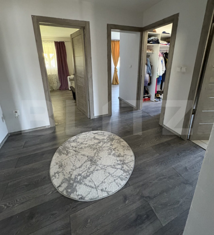 Blitz va propune la vanzare o casa dispusa pe un singur nivel situată în localitatea Nazna , județul Mureș • suprafața teren 450 mp • teren împrejmuit cu gard de lemn pe fundație de beton • suprafața construită la sol 142 mp • suprafața desfășurată 142 mp • construită din cărămidă pe fundație din beton , acoperit cu țigle , compusă din: : - 3 dormitoare - 1 living - 1 bucătărie - 1 baie - 1 dressing - 1 antreu - 1 hol An construire - 2018 - • casa dispune de toate utilitățile , branșamentele , inclusiv canalizare • intrarea în curte se poate face din strada de pe două părți -ieșire la asfalt • casa se vinde complet utilată și mobilată . Pozitia casei precum si proximitatea fata de scoli si gradinite o face perfecta pentru o familie cu copii dar nu numai. Privelistea este panoramica iar cartierul este format in special din familii tinere. Va asteptam la vizionare! Cod ofertă / ID BLITZ: P145114 Id intern: P145114