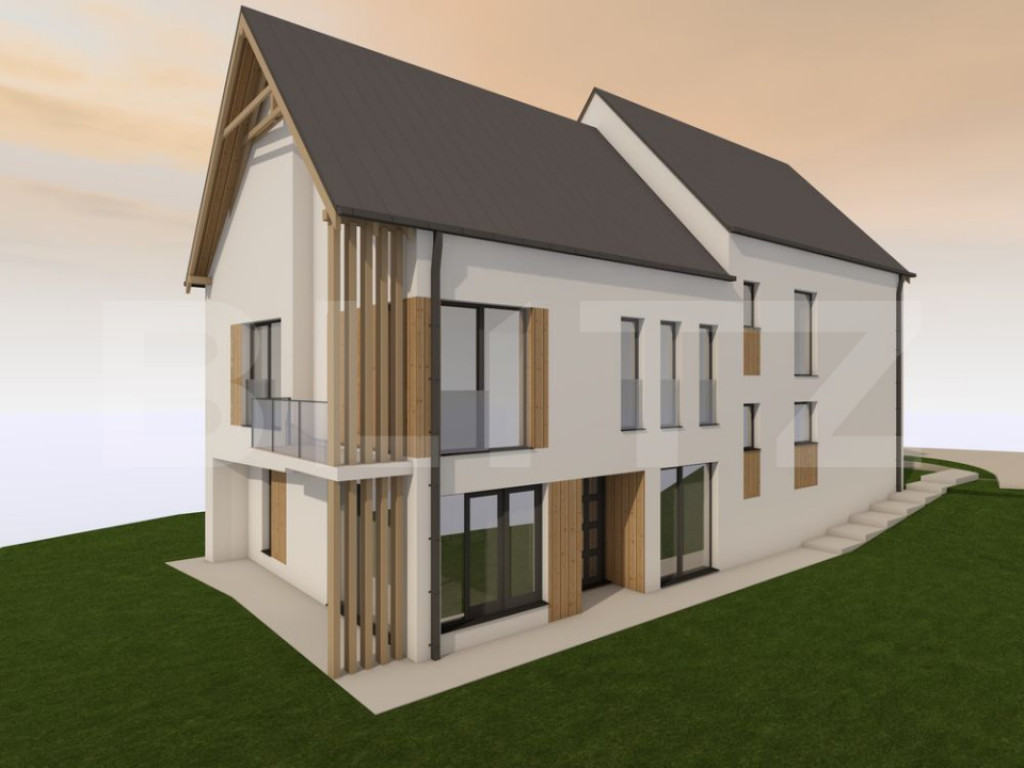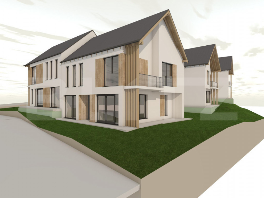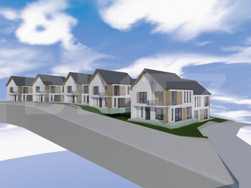 Teren: 340 mp per unitate + cota parte drum (unitățile din spate cu ieșire la pârâu au teren ușor mai mare)