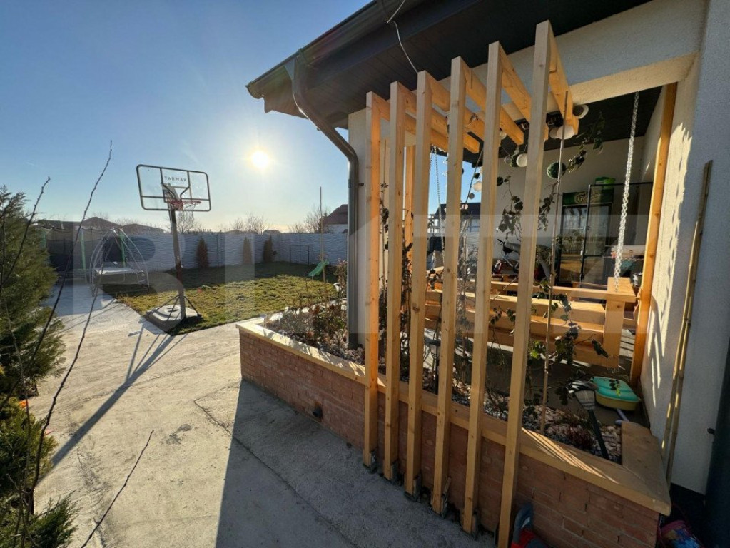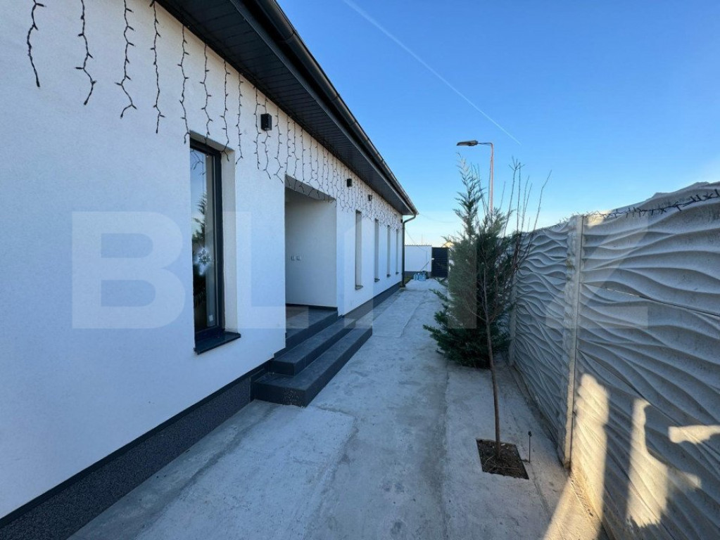 Blitz vă propune spre achiziție o casă situată pe un teren generos de 496 mp,cu o suprafață construită de 160 mp și o suprafață utilă locuibilă de 130 mp, oferind spațiu suficient pentru întreaga familie să se bucure de confortul unei locuințe moderne. Locuința este dispusă pe un singur nivel și include 3 dormitoare spațioase, un dressing practic, 2 băi , un hol generos, un living luminos și o bucătărie complet utilată și echipată. De asemenea, beneficiază de o terasă încântătoare de 25 mp, perfectă pentru momentele de relaxare și socializare în aer liber. Utilitățile includ curent electric, put forat pentru apă , fosa septica ecologică , sisteme moderne de încălzire, inclusiv încălzire în pardoseală și pompă de căldură, asigurând un confort termic optim în orice condiții climatice. De asemenea, este echipată cu aer condiționat pentru răcorirea eficientă în timpul verii. Casa se vinde complet mobilată și utilată, cu mobilier modern și de bun gust, oferind un ambient plăcut și ospitalier de la prima vedere. Cod ofertă / ID BLITZ: P100077 Id intern: P100077