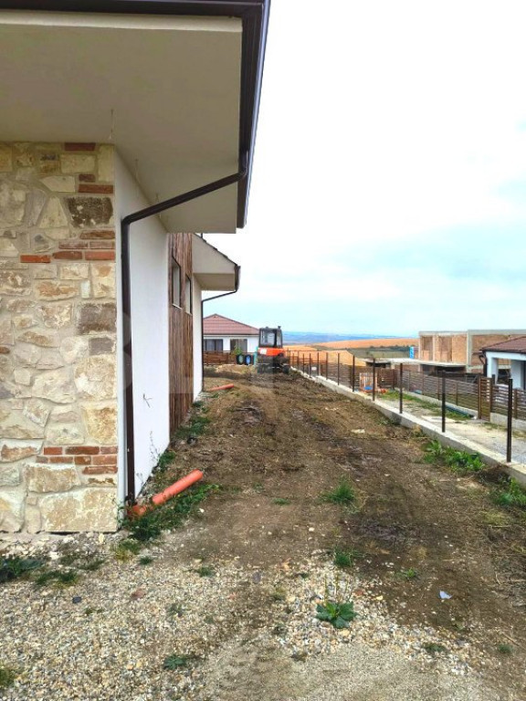 Vrei să locuiești într-o casă superbă in stil mediteranian, situată într-o zonă liniștită, însorită și înconjurată de verdeață? Blitz Imobiliare vă prezintă o casă individuală modernă, situata în localitatea Dezmir, pe un drum privat ce urmeaza sa fie asfaltat, la doar 6 minute de mers pe jos de stația de autobuz. Suprafața totală a terenului este de 450mp, iar cea a casei de 150 mp utili. Casa este dispusă pe 2 niveluri, parter si etaj, oferind o compartimentare practică și eficientă dupa cum urmeaza: Parter => holul pe mijloc cu casa scarii si baia de serviciu cu geam mare, in dreapta avem living-ul, iar in partea stanga se afla bucataria cu locul de luat masa, care se poate imparti (optional) in bucatarie si un birou/dormitor, bucataria avand si iesirea pe terasa. Etaj => 3 dormitoare, fiecare cu baie proprie cu geam si un hol. Livingul este prevazut cu cos pentru semineu. Pentru o eficiență termică maximă s-au folosit materiale de calitate superioară celor uzuale precum => Geamuri cu 3 sticle cu reflexie, tamplaria avand 8 camere, termoizolație exterioară polistiren de 15 cm, caramida Cemacon de 25, tigla Bremac. La constructia casei s-au folosit 22 de stalpi de sustinere din beton armat. Casa se va preda la stadiul de semifinisat. Lucrarile pentru semifinisaje se vor efectua dupa ce cumparatorul va decide daca are nevoie de modificari sau nu. Casa este racordata la apa, gaz, curent electric si canalizare. Cod ofertă / ID BLITZ: P131934 Id intern: P131934