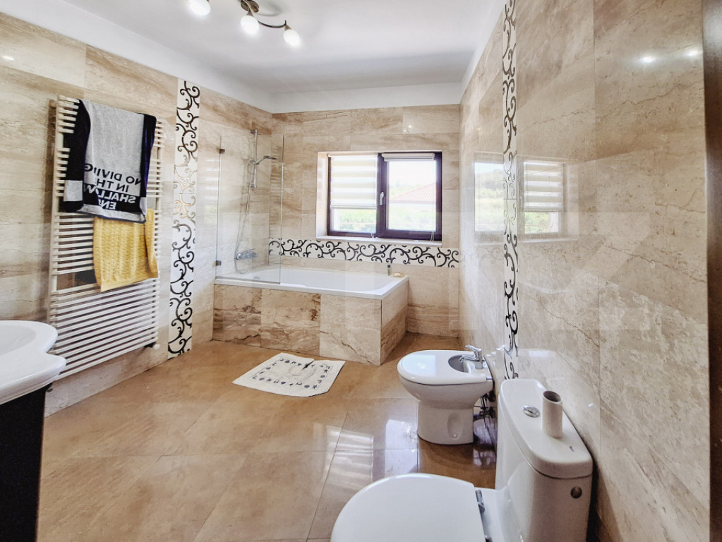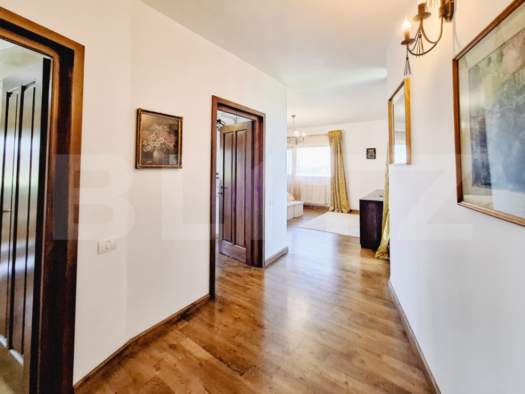 Blitz ofera spre vanzare un refugiul perfect pentru o viață rafinată, o casă deosebită cu priveliște, eleganță și confort desăvârșit. Descoperă un cămin cu suflet, construit în 2016, ce îmbină calitatea, rafinamentul și funcționalitatea într-o locuință ce inspiră bun gust și armonie. Situată pe un teren generos de 640 mp, casa are o suprafață utila de 265 mp, realizată din cărămidă cu izolație de 15 cm, ceea ce oferă eficiență termică și confort pe tot parcursul anului. La demisol, găsim o cameră tehnică și o pivniță practică, iar la parter, spațiile de zi se deschid cu un living elegant cu șemineu, dining room, bucătărie separată cu acces la camară, baie, și dressing. Etajul găzduiește dormitorul matrimonial cu baie proprie și dressing generos, precum și alte două dormitoare deservite de o baie comună, plus un spațiu dedicat spălătoriei. La mansardă, un birou sau dormitor cu acces către o terasă circulabilă oferă o priveliste spectaculoasă, ideală pentru relaxare sau inspirație. Fiecare detaliu a fost ales cu grijă: mobilier și uși din lemn masiv, parchet din lemn natural, marmură și travertin, tâmplărie QFort cu 7 camere, sistem de alarmă, În plus, locuința dispune de un garaj dublu. Această casă nu este doar o proprietate, ci un adevărat refugiu pentru cei care apreciază calitatea și liniștea, într-un ambient în care eleganța întâlnește confortul. Cod ofertă / ID BLITZ: P150596 Id intern: P150596