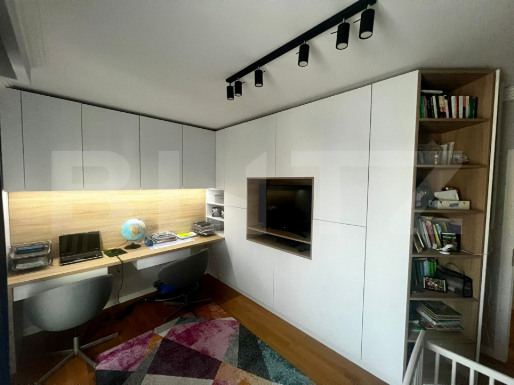 Reședință modernă, complet echipată – Tudor, str. Sfântul Ștefan Într-una dintre cele mai apreciate zone ale orașului, vă propunem spre vânzare o proprietate excepțională, ce îmbină designul contemporan cu eficiența energetică și confortul absolut. 551 mp teren | 244 mp construiți | D+P+1E Construită în 2021, cu finisaje și dotări premium Interiorul este generos și luminos, compartimentat eficient: • Living open space cu bucătărie și dining • 3 dormitoare, dintre care unul matrimonial cu dressing • 2 băi • 2 garaje Exteriorul impresionează prin terasa acoperită complet utilată, ideală pentru momente de relaxare și socializare. Dotări de top: • Încălzire în pardoseală • Panouri fotovoltaice 8kW • Șemineu Hoxter • Ferestre Salamander tripan • Automatizări smart, alarmă și supraveghere video Proprietatea se vinde complet mobilată și utilată, la cheie. Cod ofertă / ID BLITZ: P162687 Id intern: P162687