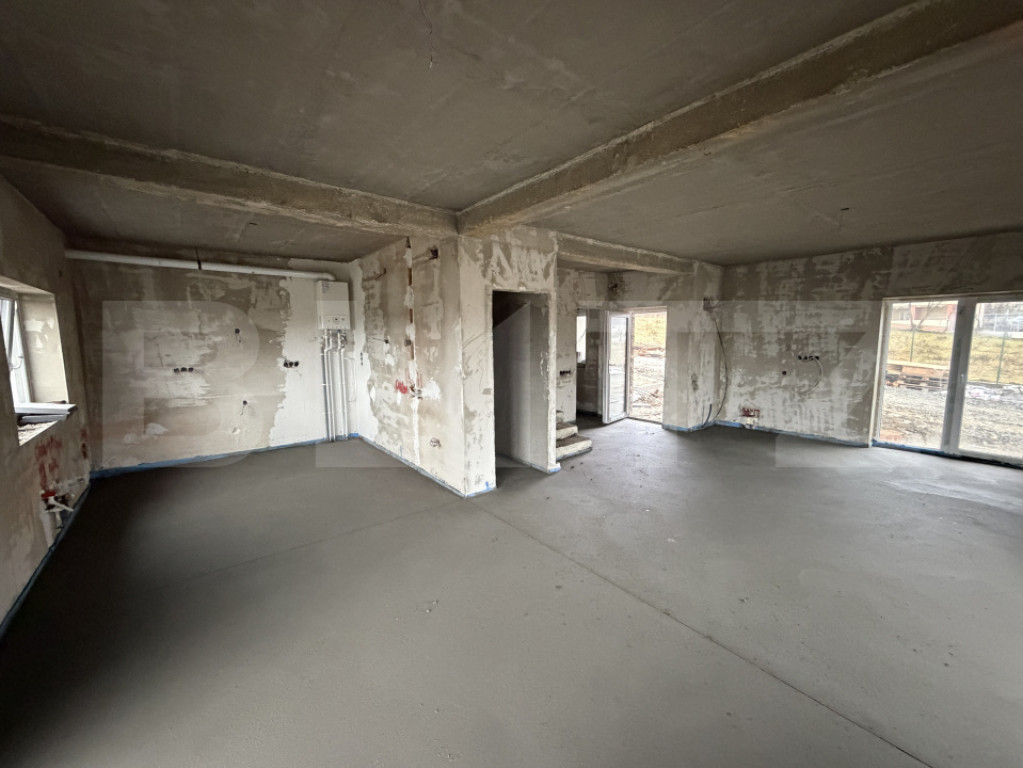BLITZ oferă spre vânzare duplex, zona excelentă în cartierul Bradet. Proiectul îmbină confortul designului arhitectural cu funcționalitatea modernă, fiind conceput pentru cei care își doresc confort superior într-o proprietate premium. Proprietatea dispune de o suprafață de 119mp utili, cu suprafață liberă de curte și grădină de 190 mp, regimul de înălțime P+E. Compartimentare atent gândită: Parter: hol de acces, scări sub care se află un spațiu ce poate fi folosit pentru depozitare, baie, (spațiile sunt generoase si se poate regândi destinația lor); Parter: (51 mp) hol de acces, scări sub care se află un spațiu ce poate fi folosit pentru depozitare, living spatios tip open-space cu bucătărie si dinning, baie; Etaj (51 mp): hol de acces, dormitor matrimonial cu baie proprie, doua dormitore, baie. Detalii tehnice: zidarie din caramidă, izolatie exterioară cu polistiren de 15 cm, geamuri tripan mari și luminoase, încălzire în pardoseală, centrală pe gaz, pereti semifinisati, instalatii sanitare si electrice pe pozitie, ușă PVC la intrare. Casa se predă la stadiul semifinisat, recepția se va face în 3-4 luni. Prețul listat este aferent unei unități locative. Pentru mai multe detalii nu ezitati să ne contactați, vă așteptăm cu un interes aparte pentru a programa o vizionare și de a descoperi potențialul întregii proprietăți. Cod ofertă / ID BLITZ: P162738 Id intern: P162738