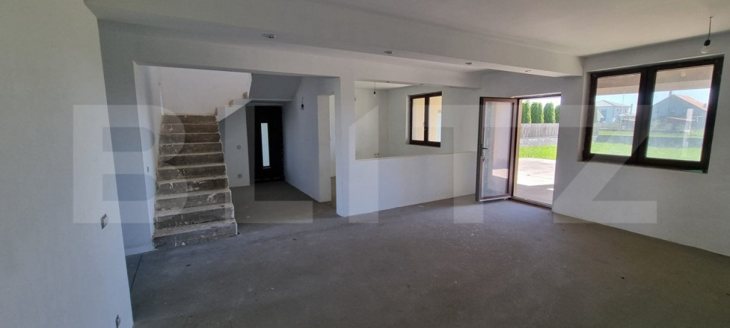 O oportunitate unică de achiziție se ivește în Lazuri! Vă prezentăm o casă de tip duplex, construită cu atenție la detalii și confort, situată pe o stradă plină de case noi. Cu o suprafață generoasă și finisaje de calitate superioară, această proprietate este locuința perfectă pentru o familie care caută confortul și eleganța. Caracteristici Principale: Suprafață Utilă și Teren Generos: Casa are o suprafață utilă de 175 mp și este amplasată pe un teren spațios de 980 mp, oferind suficient spațiu pentru toate activitățile familiei dumneavoastră. Acces Auto Facilitat: Frontul terenului are 20 metri, permițând accesul auto atât în curtea din față, cât și în grădină. Casa dispune de un garaj pentru o mașină și o cameră tehnică pentru centrala termică, cu acces direct în interiorul casei. Compartimentare Eficientă: La parter, casa este compartimentată într-un dormitor, o baie, un dressing și un living open space cu bucătăria. La etaj, găsim un dormitor, un dormitor cu balcon de 10 mp, un dressing și o baie. Dotări Premium: Casa beneficiază de încălzire în pardoseală atât la parter, cât și în mansardă, oferind confort termic optim în orice sezon. Este turnat planșeu de beton între nivele. La exterior izolată cu izolație de polistiren de 10 cm. Acoperișul este acoperit cu țiglă, oferind protecție durabilă împotriva intemperiilor. Spații Exterioare Generoase: În spatele casei există o terasă generoasă de 40 mp, jumătate fiind acoperită de acoperișul casei, oferind un spațiu ideal pentru relaxare și socializare în aer liber. Sistem de Îngrădire și Utilități: Proprietatea este împrejmuită cu gard de boltari de beton și elemente de metal și lemn. În grădină există un put de apă forat și funcțional. Casa este conectata la curentul trifazic. Toate utilitățile necesare, inclusiv apă, canalizare și curent electric, sunt disponibile. Detalii Suplimentare: Această casă de tip duplex reprezintă un adevărat paradis pentru cei care caută confort și funcționalitate. Pentru mai multe informații sau pentru a programa o vizionare, vă rugăm să ne contactați. Acționați acum pentru a deveni proprietarul acestei case moderne și spațioase în Lazuri! Această proprietate cu adevărat specială nu va rămâne disponibilă mult timp. Pentru a vă programa o vizionare sau pentru a obține mai multe informații, vă rugăm să ne contactați cât mai curând posibil. Cod ofertă / ID BLITZ: P102441 Id intern: P102441