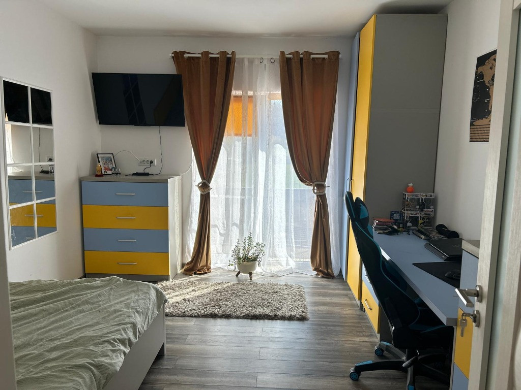 Această casă de vânzare are 135 mp și 4 camere. Este complet mobilată și utilată, oferind tot confortul necesar. Finisajele sunt de înaltă calitate, iar designul este contemporan. Este perfectă pentru o familie sau pentru cei care apreciază spațiul generos. Situata in apropiere de gara Rasnov Construcția este formată din P E M având la parter o bucătărie generoasă cu open space și o baie la etaj 2 dormitoare și o baie și La mansardă o cameră de locuit Locuința dispune de încălzire în pardoseală centrală proprie An construcție 2021 Locația este urbană, aproape de puncte de interes. Ai acces ușor la transport în comun, cu stații de autobuz la îndemână Nu rata ocazia de a viziona această proprietate. Sună acum pentru a programa o vizionare tel 0747046393