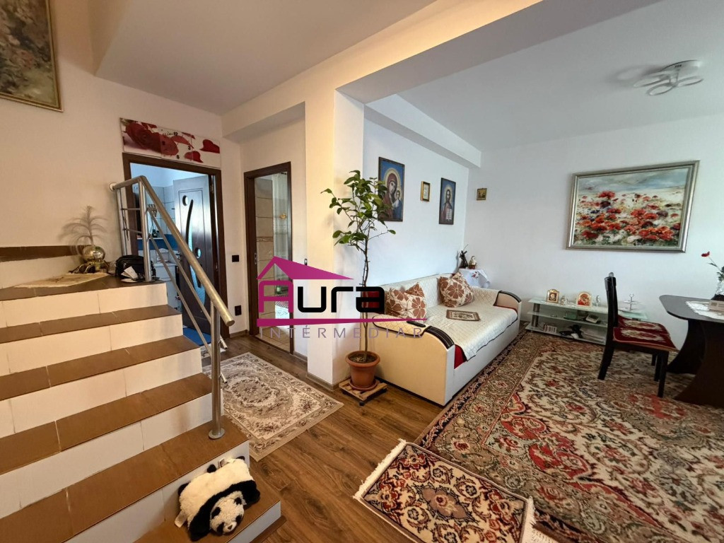 Agentia Imobiliara Aura Intermediar vinde Casa Duplex,suprafata totala 177 mp,suprafata construita la sol 59 mp,imbunatatita,renovata ,centrala gaz.Compusa din:Demisol, spatiu depozitare ,camera tehnica ,garaj in suprafata totala de 18 mp,Parter:Living,baie,bucatarie ,terasa,debara ,2 holuri.Etaj:3 dormitoare, baie,2 holuri,balcon.Se vinde mobilata utilata ,pret 200000 euro neg.tel.0747698898