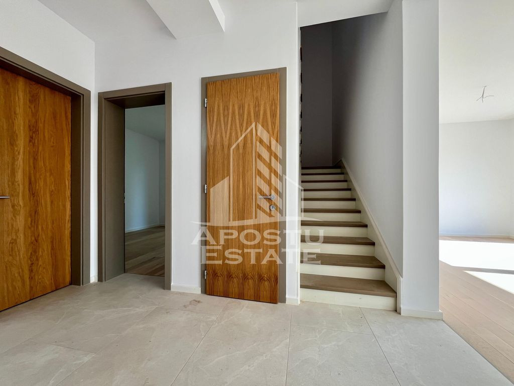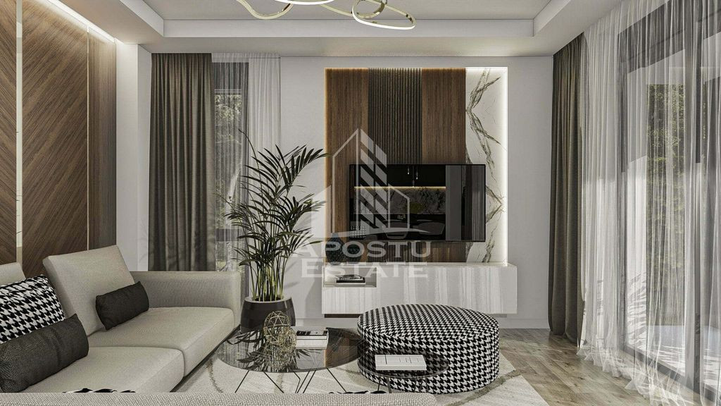 APOSTU ESTATE va propune spre vanzare o casa eco, construita pe un designe in stil nordic, cu 4 camere, 2 bai, in Dumbravita. Imobilul dispune de o suprafata utila de 109mp şi 316mp de teren. Dotari: - Produsele alese pentru construcţia ansamblului sunt naturale, reciclabile şi nepoluante. - 143 mp zona verde - Constructia din zidarie portanta de caramida cu o grosime de 25cm, sustinuta de stalpi si planseu din beton armat. - Acoperisul este realizat pe structura de lemn, acoperit cu tigla Bramac de culoare antracit. Izolatia termica de sub acoperis este realizata din spuma poliuretanica de 15 cm. -Peretii exteriori sunt realizati din cărămidă de 25 cm si creeaza un confort termic superior, imbunatatit prin placarea cu sistem termoizolant cu polistiren de 15 cm grosime, finisat cu tencuiala decorativa Ceresit. - Peretii interiori sunt construiti folosind caramida cu o grosime de 25 cm şi partial din gips-carton (4 placi), cu structura metalica de 10 cm şi izolatie cu vata minerala de 10 cm grosime. -Geamuri termopan cu sticla tripan, cu o buna izolare fonica si termica. -Usile interioare sunt realizate din lemn stratificat. -Pompa de caldura aer-apa, cu sistem de incalzire in pardoseala, avand termostat de ambient, care va oferi posibilitatea de a regla individual temperatura in fiecare dintre camere. -Racirea este asigurata de aparate de aer condiţionat moderne. -Panouri fotovoltaice. -Sistem de irigare pentru spatii verzi. -Statie de incarcare destinata maşinilor electrice. -Corpuri de iluminat cu senzori de mişcare. - Videointerfon. - 2 locuri de parcare dintre care unul cu carport. Vecinatati: - La gradina Ritei - Profi - Scoala internationala British School - Kinderville Dumbravita - Casa Bunicii - WorldClass Oferim consultanta si solutii financiare prin colaboratorii nostri. Va invitam cu drag la o vizionare! ID intern: CP2496174