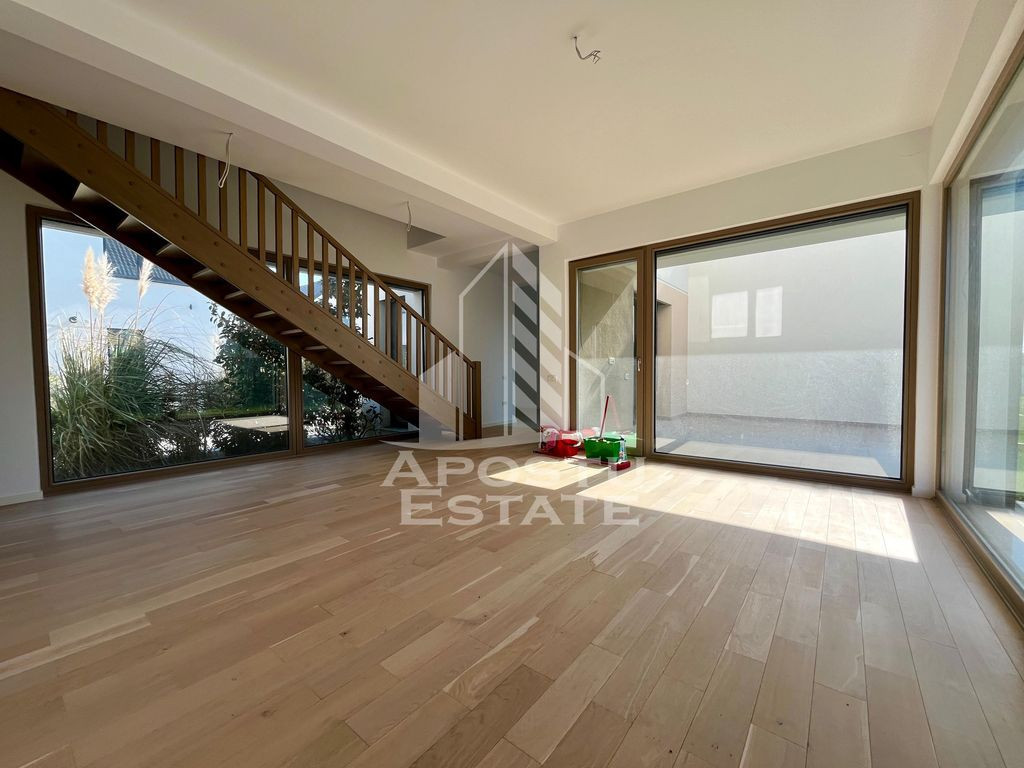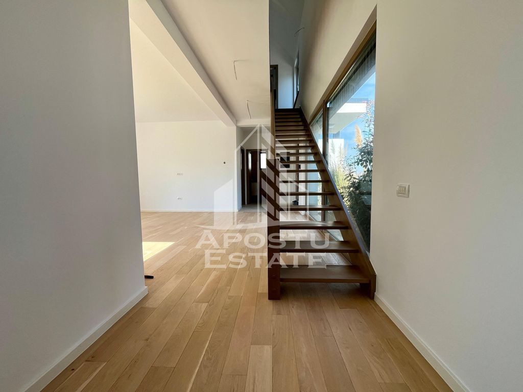APOSTU ESTATE va propune spre vanzare o casa eco, construita pe un designe in stil nordic, cu 5 camere, 3 bai, in Dumbravita. Imobilul dispune de o suprafata utila de 118mp şi 260mp de teren. Dotari: - Produsele alese pentru construcția ansamblului sunt naturale, reciclabile și nepoluante. - Curte proprie, gazon si pomi decorativi. - Constructia din zidarie portanta de caramida cu o grosime de 25cm, sustinuta de stalpi si planseu din beton armat. - Acoperisul este realizat pe structura de lemn, acoperit cu tigla Bramac de culoare antracit. Izolatia termica de sub acoperis este realizata din spuma poliuretanica de 15 cm. -Peretii exteriori sunt realizati din cărămidă de 25 cm si creeaza un confort termic superior, imbunatatit prin placarea cu sistem termoizolant cu polistiren de 15 cm grosime, finisat cu tencuiala decorativa Ceresit. - Peretii interiori sunt construiti folosind caramida cu o grosime de 25 cm și partial din gips-carton (4 placi), cu structura metalica de 10 cm și izolatie cu vata minerala de 10 cm grosime. -Geamuri termopan cu sticla tripan, cu o buna izolare fonica si termica. -Usile interioare sunt realizate din lemn stratificat. -Pompa de caldura aer-apa, cu sistem de incalzire in pardoseala, avand termostat de ambient, care va oferi posibilitatea de a regla individual temperatura in fiecare dintre camere. -Racirea este asigurata de aparate de aer condiționat moderne. -Panouri fotovoltaice. -Sistem de irigare pentru spatii verzi. -Statie de incarcare destinata mașinilor electrice. -Corpuri de iluminat cu senzori de mișcare. - Videointerfon. - 2 locuri de parcare. Vecinatati: - La gradina Ritei - Profi - Scoala internationala British School - Kinderville Dumbravita - Casa Bunicii - WorldClass Oferim consultanta si solutii financiare prin colaboratorii nostri. Va invitam cu drag la o vizionare! ID intern: CP2496139