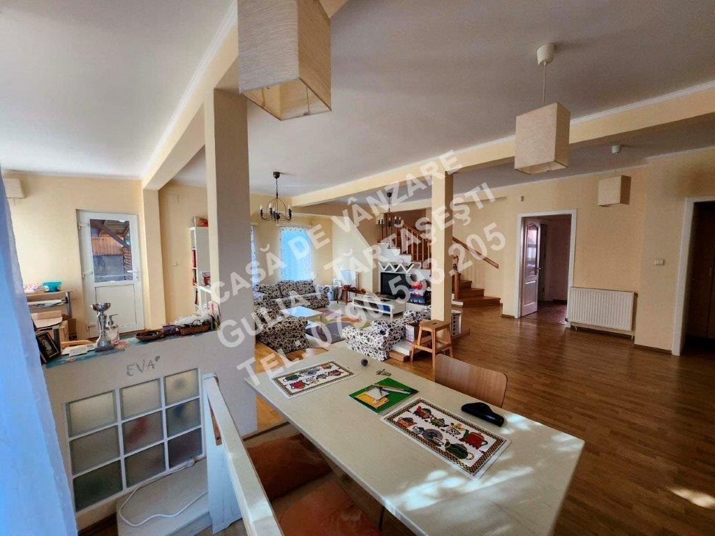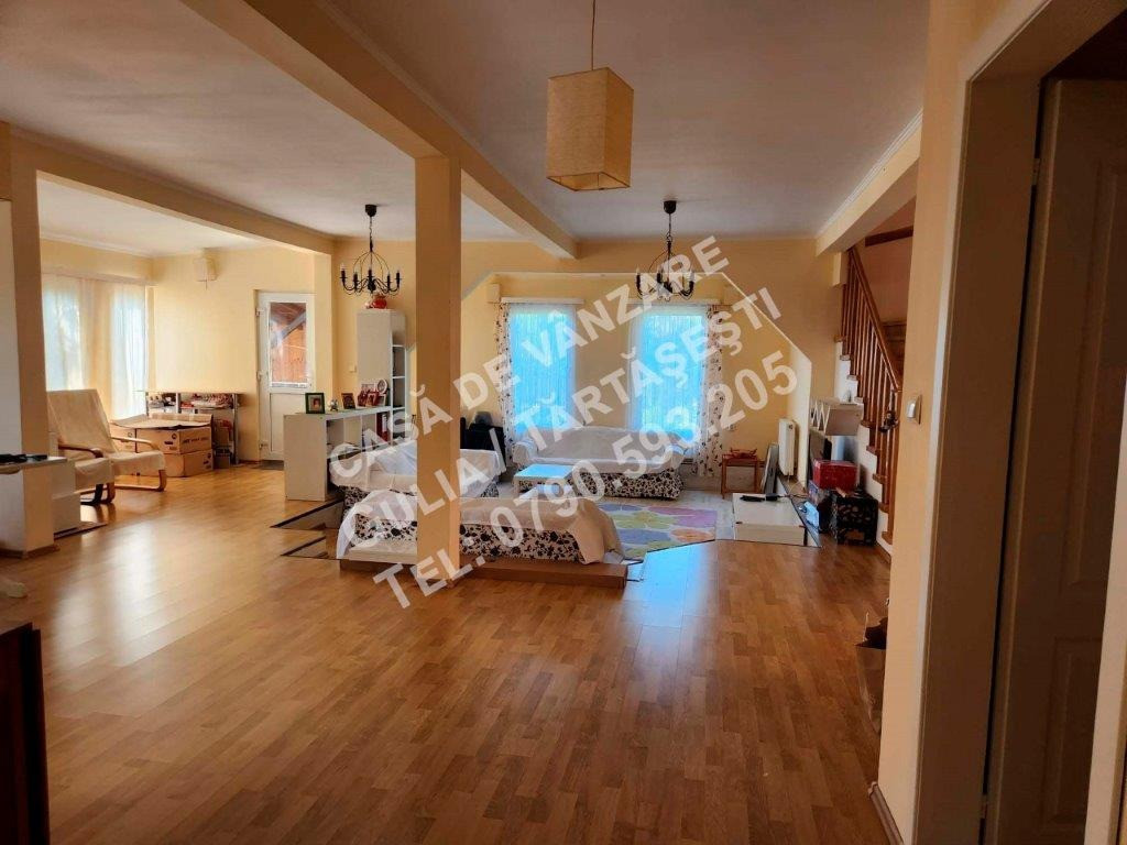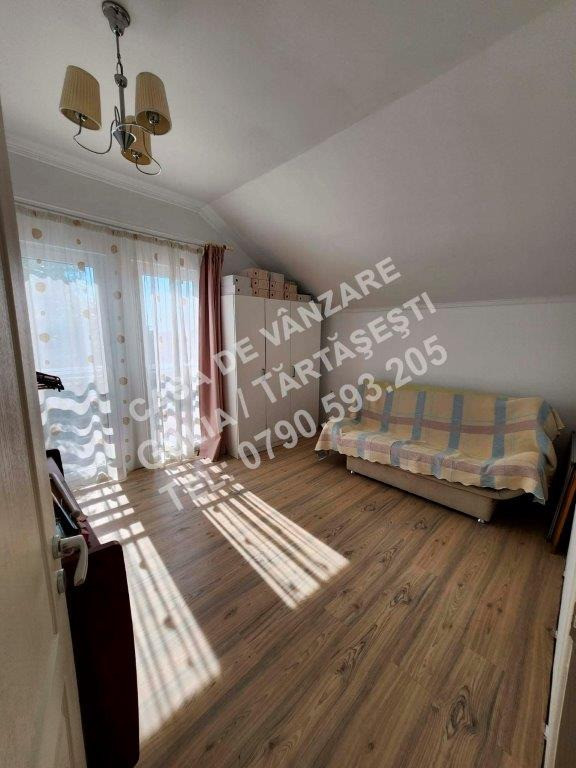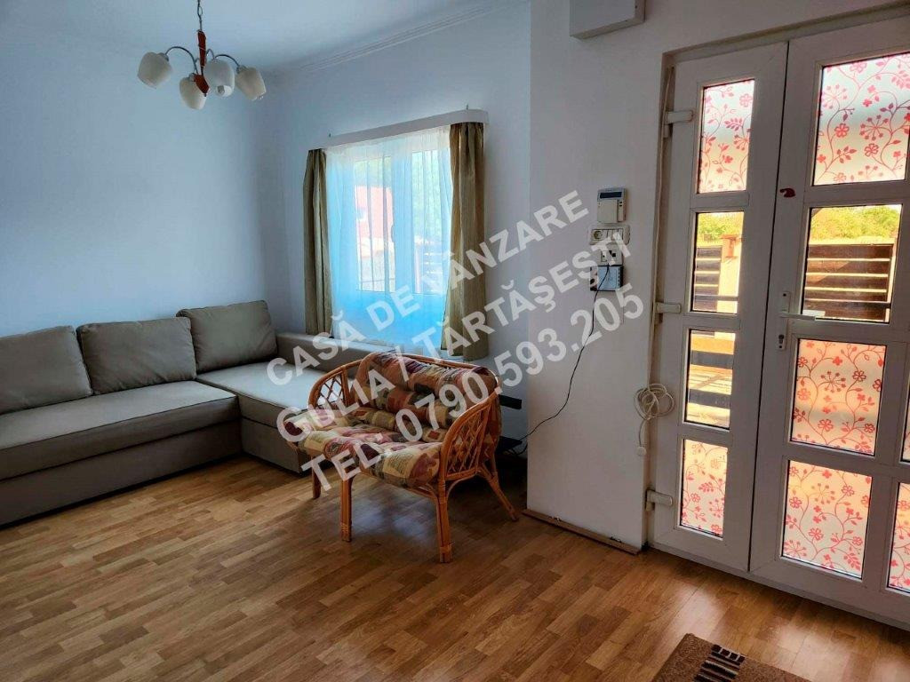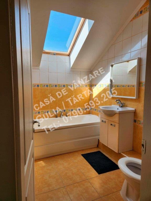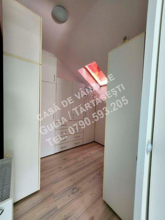 Direct proprietar, vand casa ecologica pe structura din lemn si fundatie din beton. Locatie: Sat Gulia, comuna Tartasesti, jud Dambovita, la 5 min distanta de Autostrada A0 (6km). An constructie: 2008. Teren 560 mp cu deschidere 18 m la drum public betonat. Gaze (2 centrale, una pentru parter si una pentru etaj), curent, put cu hidrofor si fosa vidanjabila. Loc de parcare acoperit pentru 2 masini (in curte intra pana la 4 masini). Foisor de aprox. 20 mp si magazie depozitare aprox. 10 mp Zona foarte linistita, curata, verde, in capatul strazii la 200 m de casa este intrarea in padure/ cantonul padurarului. Suprafata casei este de 210 mp utili, pe 2 nivele (parter si etaj) plus pod pentru depozitare, aprox 70 mp utili. Toate actele sunt la zi si in perfecta regula (cadastru, intabulare, etc) Este disponibil proiectul de autorizare pentru construirea casei si poze din timpul constructiei.