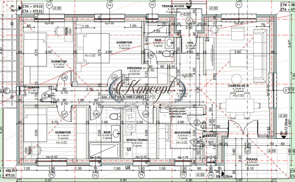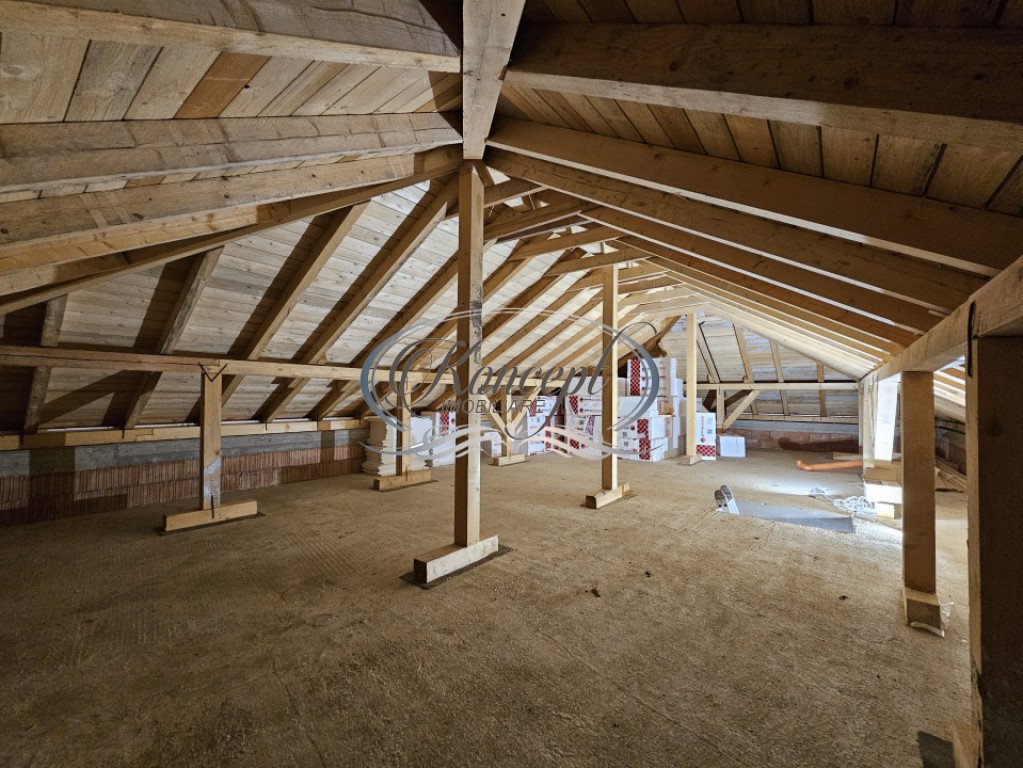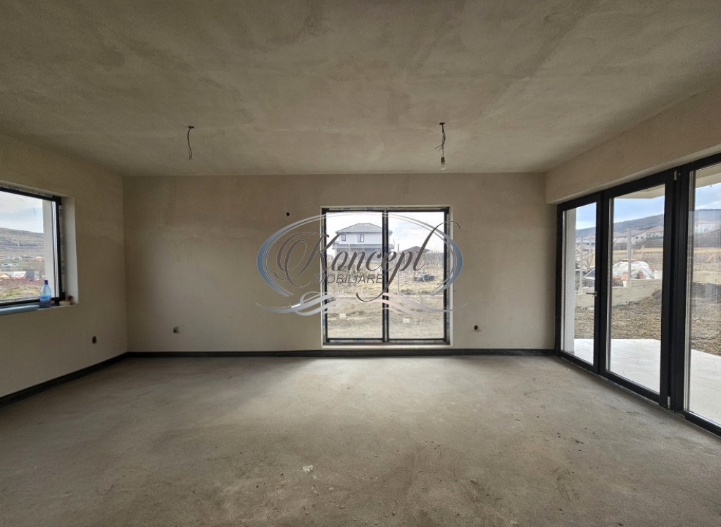 Koncept Imobiliare va ofera spre vanzare o casa unifamiliala moderna, amplasata in Chinteni, intr-o zona de case noi, linistita si aerisita, ideala pentru cei care isi doresc confort si intimitate, la doar cateva minute de Cluj-Napoca. Proprietatea este dispusa pe un singur nivel, beneficiind de orientare Sud-Est, ceea ce asigura lumina naturala pe tot parcursul zilei, si este amplasata pe un teren drept de 465 mp, cu front generos de 25 ml. Casa are o suprafata utila de 105 mp, la care se adauga o terasa de 10 mp, fiind compartimentata eficient in hol de acces, living luminos, bucatarie inchisa cu debara, 3 dormitoare dintre care unul matrimonial cu baie proprie si dressing, inca o baie pentru celelalte doua dormitoare, o debara spatioasa si o camera tehnica cu inaltime de 2.85 m, peste standardul uzual. Podul, cu o suprafata de aproximativ 120 mp, dispune de placa de beton si inaltime generoasa, fiind ideal pentru depozitare, hobby sau chiar amenajare ulterioara de spatii suplimentare. Imobilul este construit din caramida, izolat cu polistiren de 15 cm si acoperit cu tigla, beneficiind de finisaje exterioare moderne, cu decorativa alba si accente din piatra naturala. Se preda la stadiul de semifinisat, cu instalatii electrice si sanitare trase pe pozitie, pereti tencuiti si gletuiti si sapa autonivelanta, oferind posibilitatea personalizarii interioare dupa propriul stil. Exteriorul este complet amenajat, cu alei pavate, gazon, gard cu soclu de beton si porti metalice. Casa dispune de dotari premium precum pompa de caldura, incalzire prin pardoseala, panouri fotovoltaice de 5 kW, tamplarie Veka cu geam tripan si priza trifazica pentru incarcare auto electrica. De asemenea, este prevazuta cu sistem de colectare a apei pluviale, cu rezervor de 2 mc, util pentru intretinerea spatiului verde. Proprietatea beneficiaza de 2 locuri de parcare in curte si utilitati complete: apa, curent si canalizare, fiind incadrata in clasa energetica A. Prin pozitionarea intr-o zona buna din Chinteni, constructia pe un singur nivel, eficienta energetica ridicata si podul generos care aduce un plus major de functionalitate, aceasta proprietate reprezinta o alegere excelenta pentru o familie care cauta confort, spatiu si posibilitati de extindere sau personalizare. De asemenea, poate fi o investitie inspirata pentru cei care isi doresc o locuinta moderna, bine construita, intr-o zona in plina dezvoltare. Pentru informatii suplimentare, programarea unei vizionari sau pentru a afla oferta noastra completa va stam la dispozitie telefonic, prin e-mail sau la sediul agentiei noastre, pe str. Aviator Badescu, nr. 19, Cluj-Napoca. Id intern: P21291