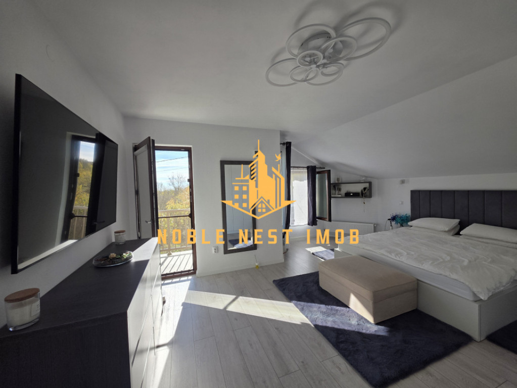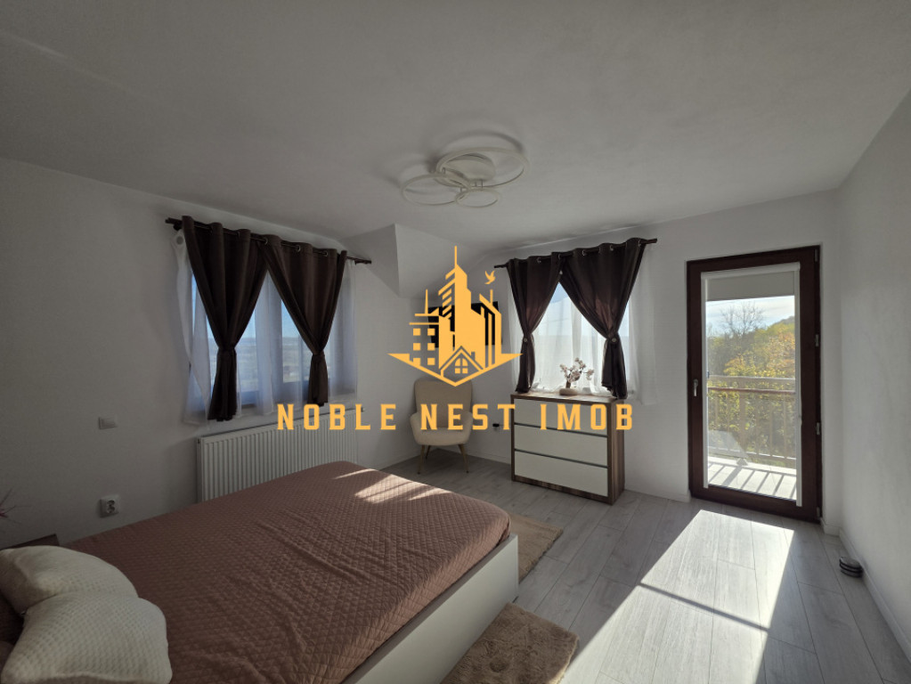 Proprietatea beneficiază de o priveliște panoramică superbă, oferind liniște și aer curat. Curtea este frumos amenajată, iar terasa de la parter invită la relaxare în aer liber, în orice moment al zilei.