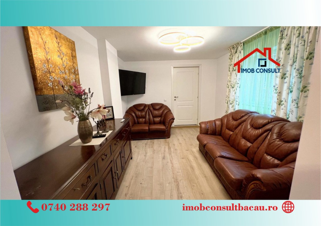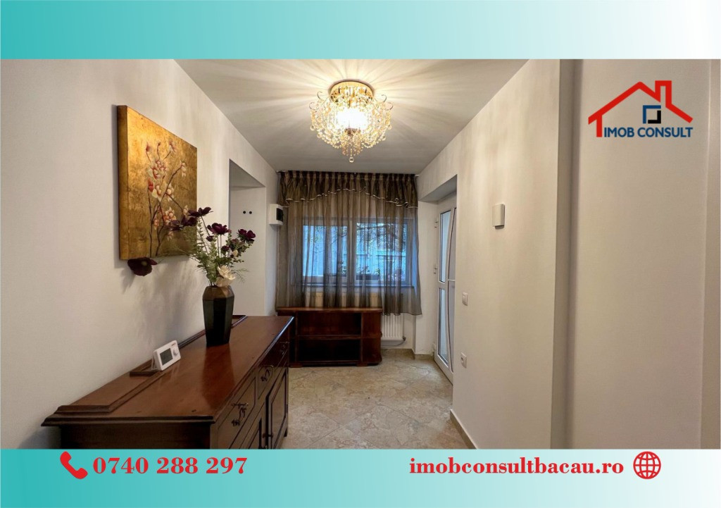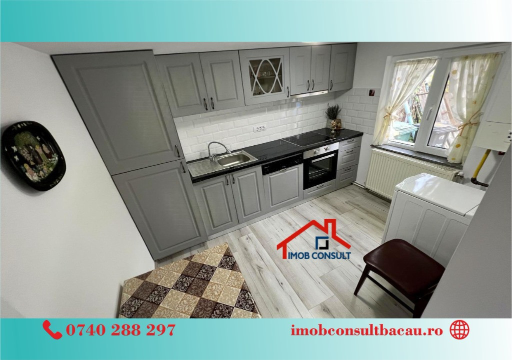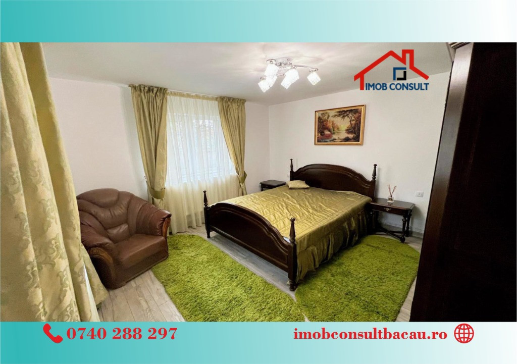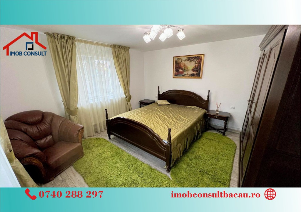 Echipa Imob Consult Bacau vă propune spre închiriere o casă modernă, recent renovată, ideală pentru cei care își doresc un ambient plăcut, confort sporit și intimitate. Proprietatea este amplasată pe un teren generos, beneficiind de gazon îngrijit, pomi fructiferi și un foișor perfect pentru momente de relaxare în aer liber. Locuința este compartimentată eficient și oferă: • 3 camere spațioase, luminoase • 2 băi moderne • Bucătărie complet utilată, cu mobilier și electrocasnice moderne • Centrală termică pe gaze naturale, pentru un confort optim în orice sezon Casa este complet mobilată și utilată, pregătită pentru a primi noii chiriași fără investiții suplimentare. Situată într-o zonă liniștită, cu acces rapid către oraș, proprietatea reprezintă alegerea ideală pentru familii sau pentru cei care caută o locuință premium într-un cadru privat și bine îngrijit. Pentru mai multe informații și programări la vizionare, nu ezita să ne contactezi: Corina: 0740^288^297; Cosmin: 0754^583^811, sau la sediul agenției noastre, Imob Consult Bacau, situat pe strada Banca Națională nr. 27 la intersecția cu Str. Neagoe Vodă, langa Irish Pub.