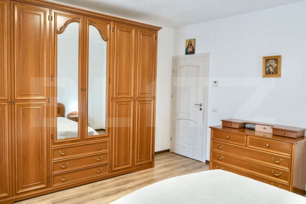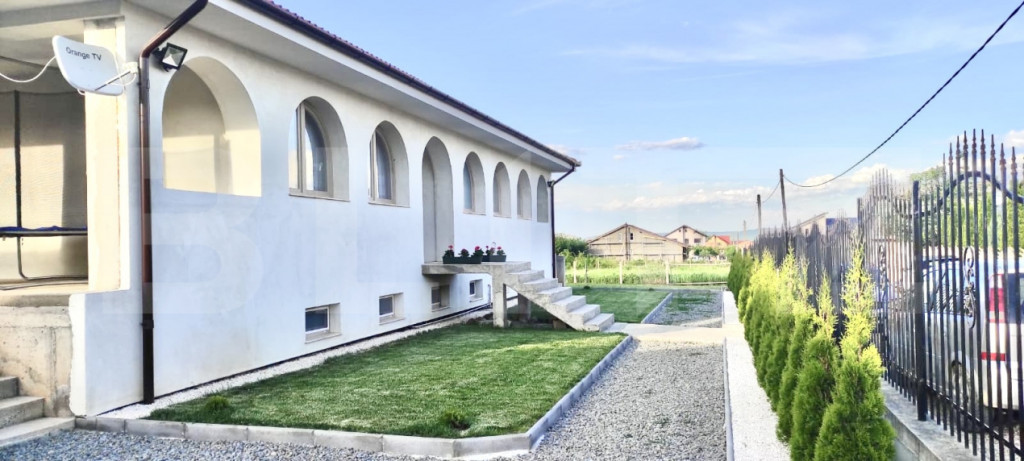 BLITZ vă propune spre vânzare o casă spațioasă și luminoasă, construită în stil mediteranean, ce impresionează prin arhitectura cu arcade rotunde și funcționalitatea excelentă a spațiilor. Proprietatea este amplasată pe un teren de 1200 mp, având o suprafață construită de aproximativ 280 mp, dispusă pe demisol și parter. ???? Parterul Toate camerele de la acest nivel au ieșire directă pe terasă (excepție băile), oferind o conexiune naturală cu exteriorul și multă lumină naturală. Compartimentarea este următoarea: • living generos cu acces pe terasă, • dormitor matrimonial cu baie proprie, • dormitor secundar, • bucătărie spațioasă, • baie principală, • hol de acces amplu. ???? Demisolul Nivelul inferior este amenajat complet și oferă funcționalitate suplimentară: • bucătărie complet mobilată și utilată, parțial open space cu o sufragerie ce are ieșire în spate, • baie, • cămară, • spălătorie mare, • dormitor, • cameră tehnică cu ieșire în spate. Curtea, cu o suprafață de 1200 mp, este amenajată cu gazon, alei pavate și arbori ornamentali, oferind un cadru relaxant și intim. Proprietatea dispune de garaj și acces auto facil, iar construcția solidă și finisajele de calitate oferă confort pe termen lung. Casa se vinde complet mobilată și utilată, fiind pregătită pentru a fi locuită imediat. ???? Ideală pentru o familie care apreciază spațiul, confortul și eleganța, această locuință reunește armonios stilul mediteranean și funcționalitatea unei case moderne. ???? Pentru mai multe detalii și programarea unei vizionări, contactați echipa BLITZ – Alături de oameni în imobiliare pe viață. Cod ofertă / ID BLITZ: P155696 Id intern: P155696
