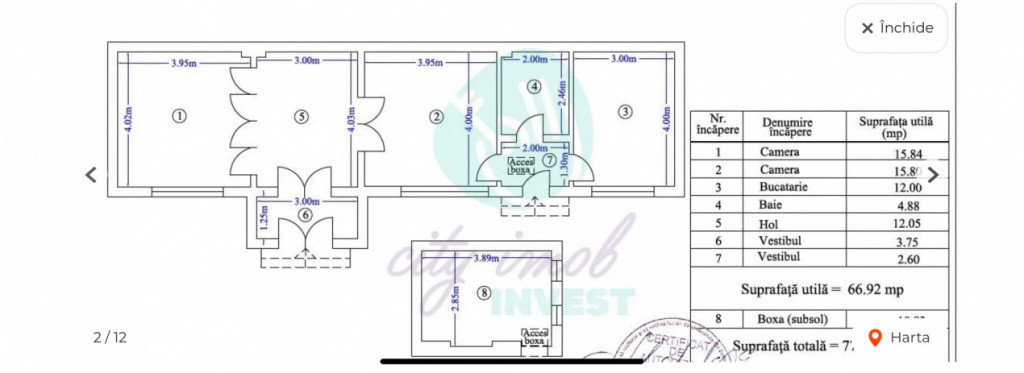 ???? Casă cu amprentă mică, 2 camere, hol locuibil – curte comună civilizată Vă propunem spre vanzare o casă cochetă, cu amprentă mică, ideală pentru cei care caută liniște și confort într-o zonă accesibilă, aproape de centrul orașului. ✨ Detalii proprietate: Compartimentare practică: 2 camere, hol locuibil, marchiză, baie, bucătărie; Pivniță utilă pentru depozitare; Mobilată clasic, funcțională și primitoare; Toate utilitățile racordate (apă, gaz, curent, canalizare). ???? Curte și vecinătate: Casa este amplasată într-o curte comună, betonată, curată și civilizată, oferind un mediu liniștit și sigur. ???? Localizare: Zona este una practică, cu acces rapid către centrul orașului și către mijloace de transport, magazine, școli și alte puncte de interes. ✅ Avantaje: Casă independentă, cu intimitate și confort; Curte comună îngrijită și vecinătate civilizată; Acces facil către zonele centrale; Locuință gata de mutare imediată. ???? O alegere potrivită pentru o persoană singură sau un cuplu care își dorește o locuință intimă, bine poziționată și ușor de întreținut. ???? Vă invităm la vizionare pentru a descoperi personal toate avantajele acestei case! Id intern: P833