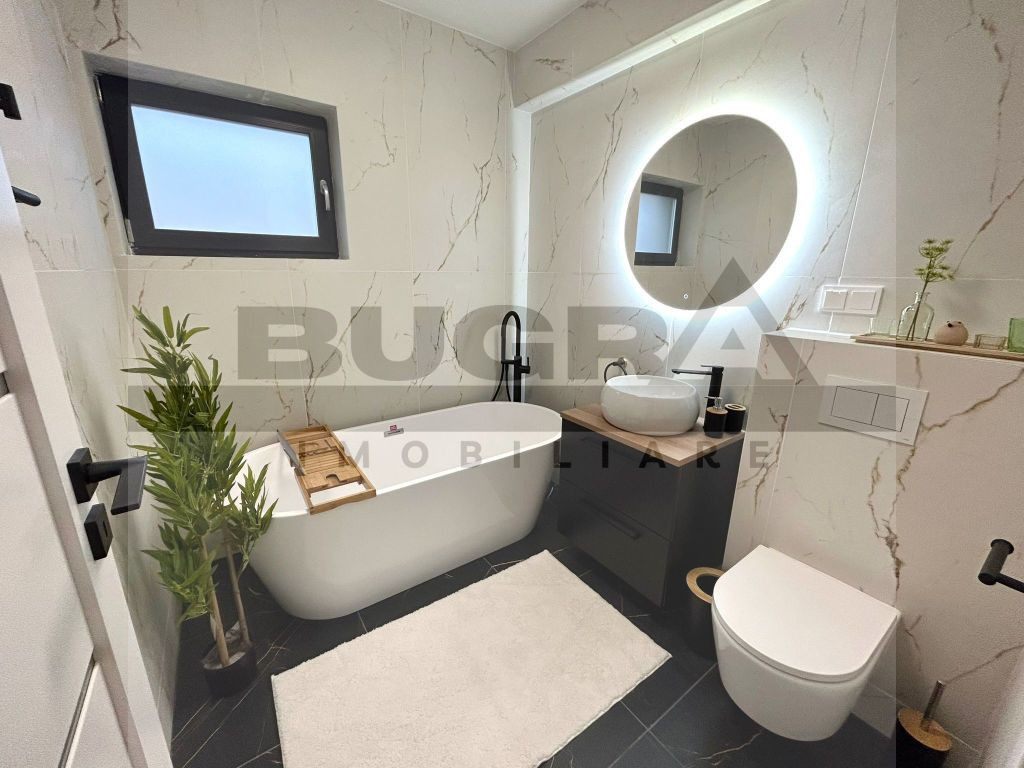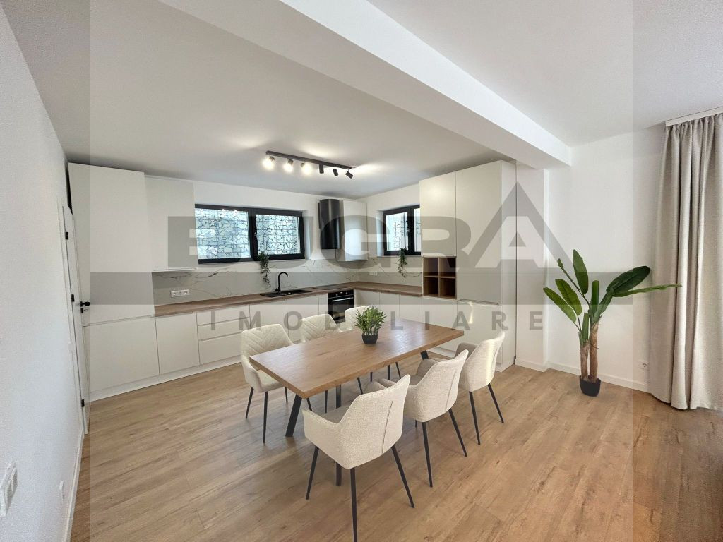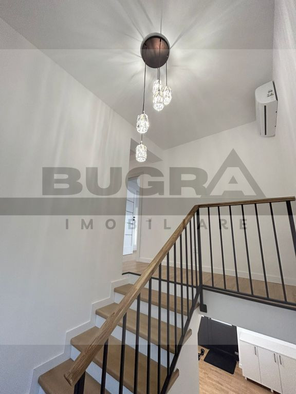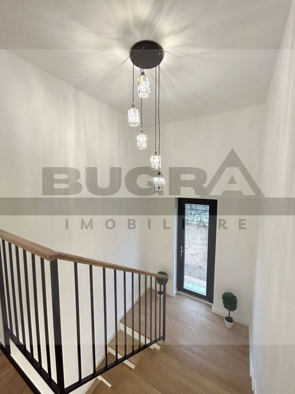 Bugra Imobiliare iti propune spre inchiriere o casa exclusivista aflata intr-o zona linistita, aerisita, in inima naturii, cu un view superb, aflat la 20 minute distanta de centrul Clujului, aflata la prima inchiriere! Proprietatea dispune de suprafete generoase mai exact: terenul cu o suprafata de 500mp amenajat cu gazon avand disponibilitatea pentru a planta pomi fructiferi, flori si diverse ornamente naturale, viitorul chirias avand oportunitatea de -asi amenaja propria gradina dupa bunul plac. De asemenea, curtea este deja amenajata cu o alee cu pavaj, ziduri finisate, lumini si prize, totul pregatit si functional Suprafata utila a casei 140mp compartimentare practica, utila si foarte bine gandita, avand un regim de inaltime: Parter+Etaj+Mansarda La Parter avem: Living frumos amenajat cu piese de mobilier de calitate care iti ofera un confort sporit cu electrocasnice de top, 1 baie, hol, 2x debara La Etaj avem: 3 camere separate, 2 bai + o terasa de 10mp La Mansarda avem: OpenSpace cu o inaltime de 2.75 cu toate utilitatile accesibile unde se poate gandi si amenaja dupa bunul plac al viitorului locatar Proprietatea ofera de asemenea un garaj exterior , poarta metalica , panouri fotovoltaice termoizolatie de 15 cm, vata minerala de 20 cm in pod, AC Multisplit Ariston 12 000 BTU +, tamplarie 3 sticle 7 camere Salamander Blue Evolution, incalzire in pardoseala peste tot, eficienta energetica clasa A, orientare SUD Casa se preteaza pentru o familie care isi doreste acces facil catre zona urbana al orasulului dar in acelasi timp si linistea dupa o zi incarcata. Pentru a afla mai multe detalii respectiv pentru vizionare, contacteaza-ne si te putem ajuta imediat.