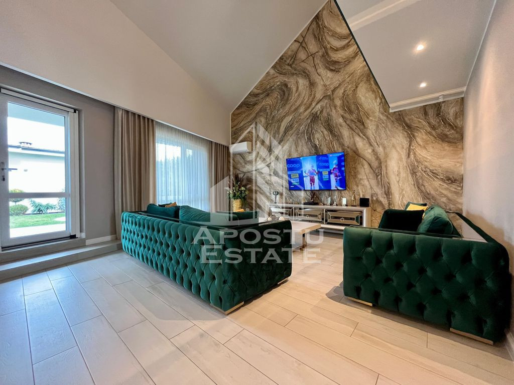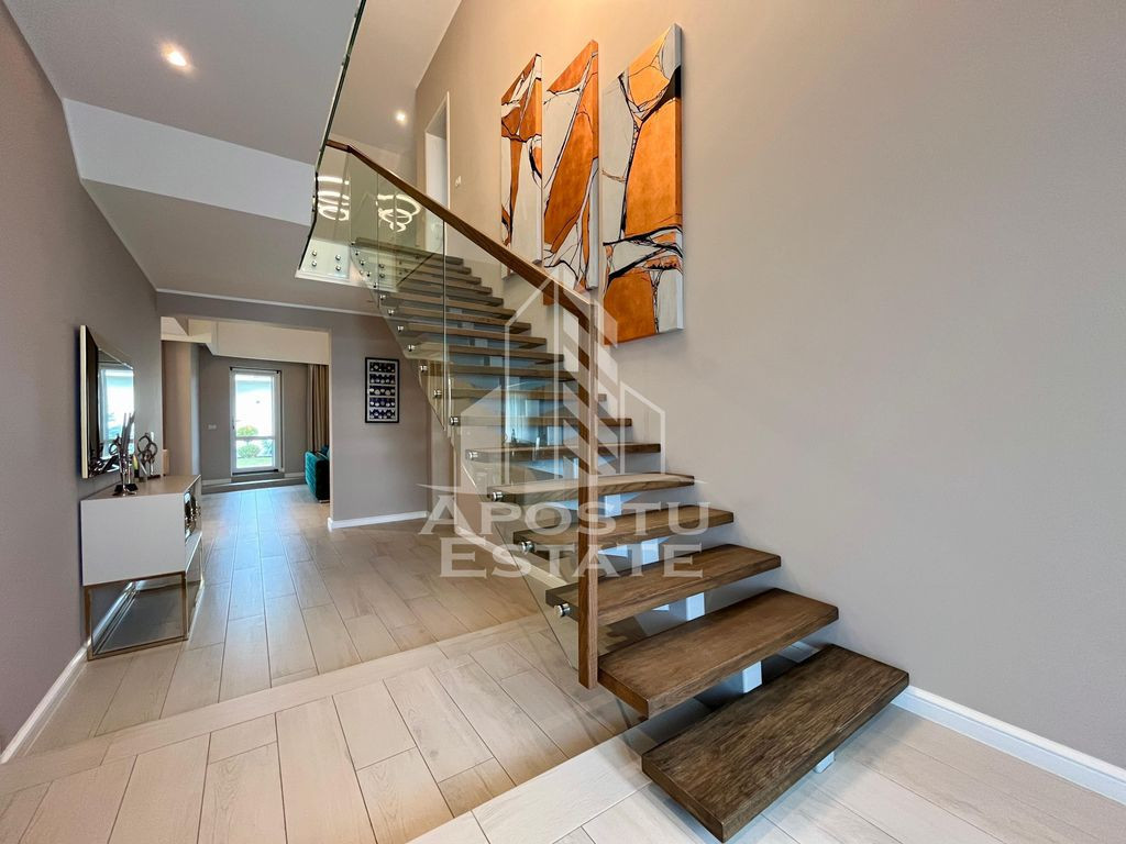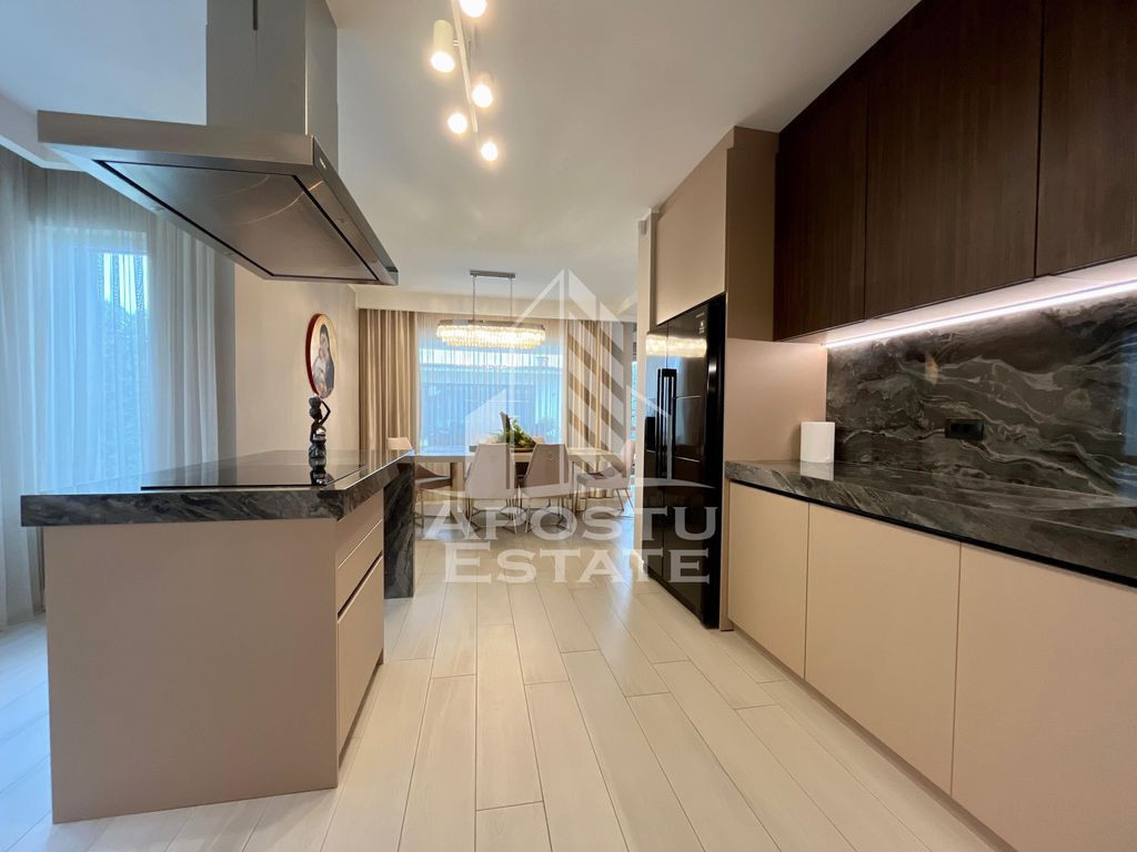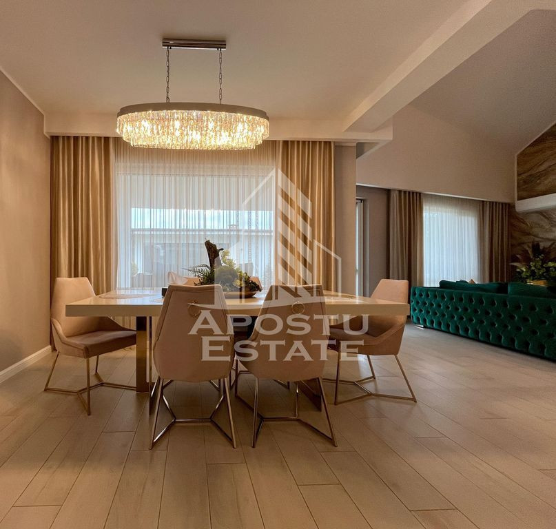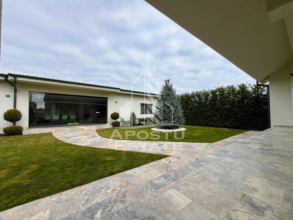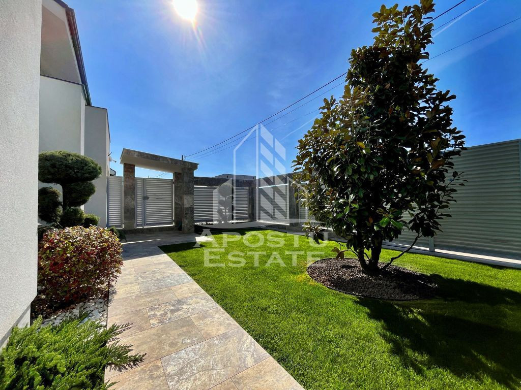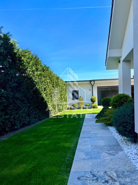 APOSTU ESTATE va propune spre vanzare in exclusivitate o casa de lux, cu 5 camere, 3 bai, in Dumbravita. Imobilul dispune de o suprafata utila de 209mp plus o anexa afara de 86mpU şi 651mp de teren. Dotari: - Curte proprie cu gazon si pomi decorativi. Sistem de irigare prin pamant cu picurare + robotel de tundere a gazonului. - Sistem de incalzire Hoval ULTRAGAS + acumulator/incalzire apa calda menajera (cost aproximativ 55.000euro). - Instalatie electrica de cea mai buna calitate. - Placaj Travertin in toata curtea cat si pe terasa. - Tigla ceramica Tondach atat pe casa cat si pe anexa. - Peretii zugraviti cu vopsea Benjamin Moore. - Izolatie cu polistiren de 10 cu densistate EPS 120 - Doua aparate de aer conditionat Daikin. - Electrocaznicele sunt de ultima generatie. - 4 locuri de parcare dintre care 2 in garaj. - anexa este prevazuta cu geamuri mari rabatabile pentru o atmosfera placuta si aerisita pe timpul verii. - confortul termic in anexa este prevazut de o centrala proprie pe gaz cu sistem de incalzire prin pardoseala. Rezumat compartimentare casa: >Parter: -hol de acces - dormitor -camera tehnica cu iesire in garaj - living spatios cu iesire in curtea din spate - bucatarie deschisa cu insula + o mica debara inchisa - zona de dining > Etaj: - dormitor matrimonial cu camera de dressing si baie proprie - dormitor normal - baie cu cada Rezumat compartimentare anexa: - zona de dinnig spatioasa cu 10 locuri la masa - zona de barbeque - bucatarie inchisa complet mobilata si utilata - grup sanitar - camera de depozitare tip camara Vecinatati: - La gradina Ritei - Kinderville Dumbravita - Casa Bunicii - WorldClass Oferim consultanta si solutii financiare prin colaboratorii nostri. Va invitam cu drag la o vizionare! ID intern: CP2328218