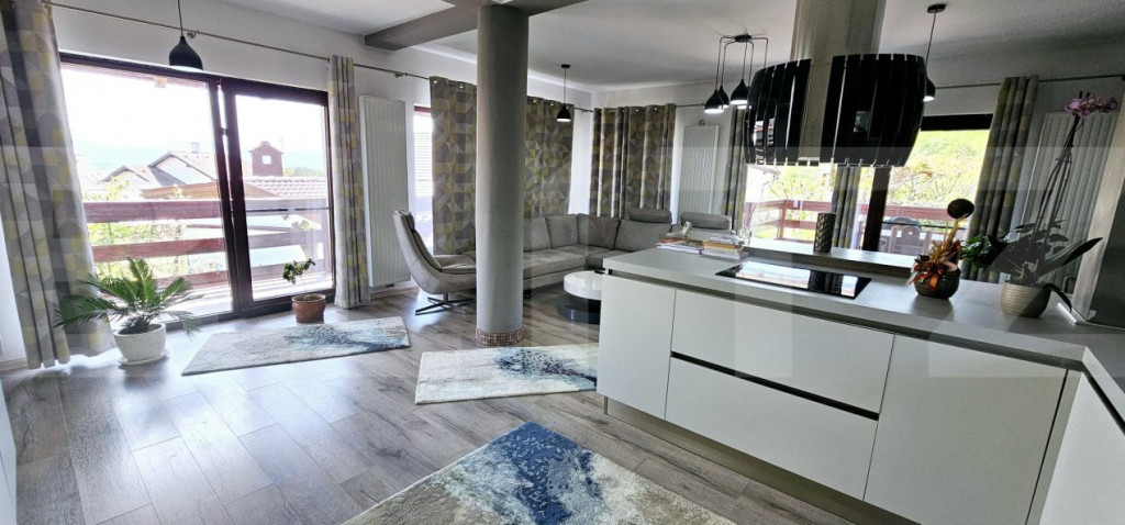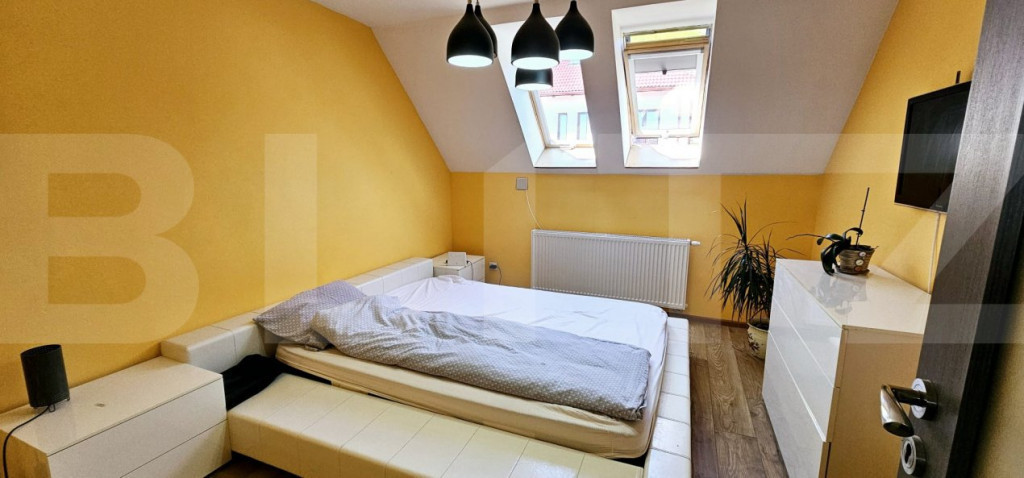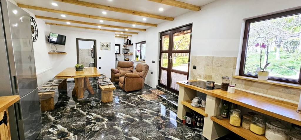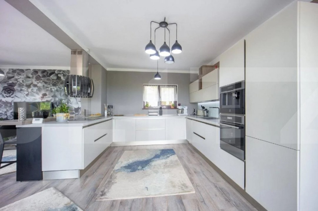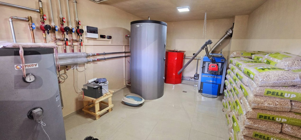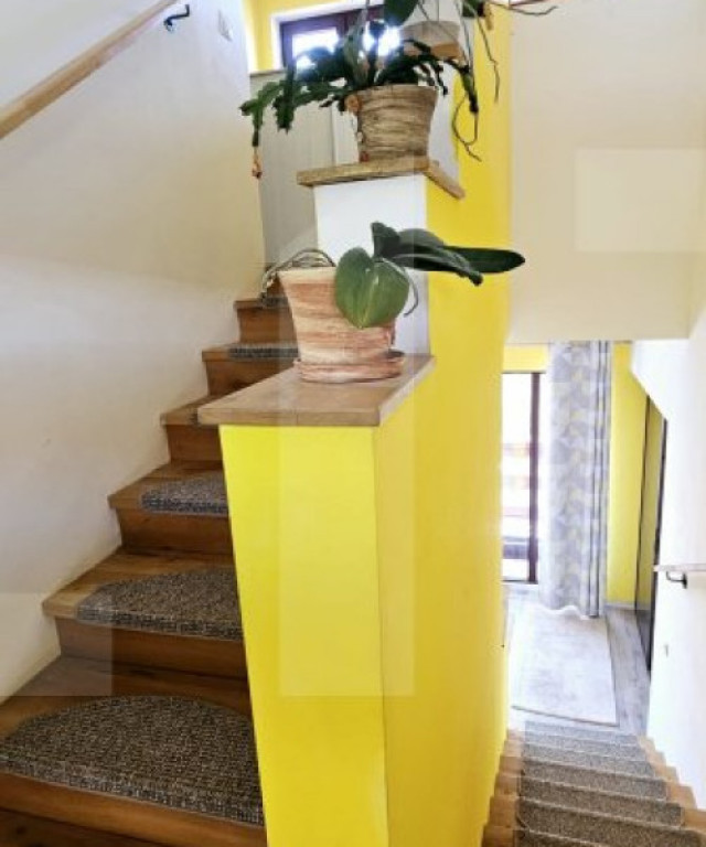 BLITZ vă propune spre vânzare o oportunitate excelentă pentru cei care cauta confortul, eleganța și liniștea unei locuințe moderne, într-un cadru naturalunic. Proprietatea este situată în prestigioasa zonă Evergreen – fostul livadă al orașului – o oază de liniște, ideală pentru cei care își doresc un cămin departe de agitația urbană, dar aproape de facilitățile orașului. Cartierul este compus exclusiv din case, beneficiind de intimitatea oferită de vecinătatea pădurii. Casa se remarcă prin calitatea materialelor folosite, arhitectura modernă, compartimentare funcțională și confortabilă. Interiorul acestei locuințe impresionează prin luminozitatea naturală și atmosfera primitoare, fiind amenajat într-un stil contemporan, cu spații largi și bine structurate. Bucătăria modernă, complet utilată și foarte încăpătoare, se îmbină perfect cu zona de living într-un open-space elegant și funcțional. Mobilierul rafinat, electrocasnicele de ultimă generație și iluminatul ambiental contribuie la crearea unui cadru călduros și relaxant, ideal pentru momentele petrecute în familie sau alături de prieteni. Camera de jos este ideal pentru birou/camera de oaspeti/camera de fitness. La mansarda se găsesc trei camere de dormit confortabile, o baie si in hol un dulap spatios perfect pentru o familie. ???? Detalii generale: • Teren generos de 1.000 mp • Suprafață utilă: 260 mp • Compartimentare pe 3 niveluri: Subsol + Parter + Mansardă • Terasă spațioasă de orientare sudica si balcon pe doua laturi a casei. • Bucătărie de vară complet utilată, cu centrală proprie, grătar și cuptor de pâine – ideală pentru toate anotimpurile ???? Dotări tehnice și facilități: • Încălzire prin centrală pe peleți, panou solar pentru apă caldă + boiler • Sistem de dedurizare a apei • Apă de rețea, fosa septică ecologică • Saună cu aburi la subsol, alături de duș, cameră tehnică și garaj ????️ Compartimentare interioară: • Subsol: Garaj, cameră tehnică, saună, duș, spațiu de depozitare • Parter: Living cu ieșire pe terasă și grădină, bucătărie open-space, cameră, baie • Etaj: 3 dormitoare, baie cu cadă Bucataria de vara, care poate fi folosita si iarna, avand centrala proprie si generoasa de 60mp, e o piatra pretioasa al proprietatii. Are vatra de foc cu cuptor de paine, camera technica separata si o toaleta de serviciu. Are centrală proprie cu peleti. Un loc ideal pentru întrunirile familiale și amicale. Atat casa cat si anexa sunt finisate, dotate si utilate folosind materialele de cea mai buna calitate, design interior cu gust deosebit, fiecare colt avand feeling de “OAO”. Curtea este amenajat cu alei pavate, spații verzi generoase și zone de relaxare, numeroase specii de plante decorative si comestibile (capsuni, mure si zmeura), arbori și arbuști, livadă cu pomi. Casa se vinde complet utilata si semimobilata. Detalii technice: Incalzire: centrala termica cu brichete Panou solar pentru apa calda+Boiler Dedurizator pentru apa Apa de retea, canalizare cu fosa septica Sauna de abur Dotări premium: Bucataria: mobila ROVERE Termopane SALAMANDER Această proprietate oferă un mix perfect între lux, funcționalitate și natură. Este ideală pentru cei care vor o casă „gata de locuit”, unde fiecare detaliu a fost gândit pentru confortul maxim. Pentru mai multe detalii sau pentru a programa o vizionare, nu ezitati sa ne contactati! Cod ofertă / ID BLITZ: P144244 Id intern: P144244