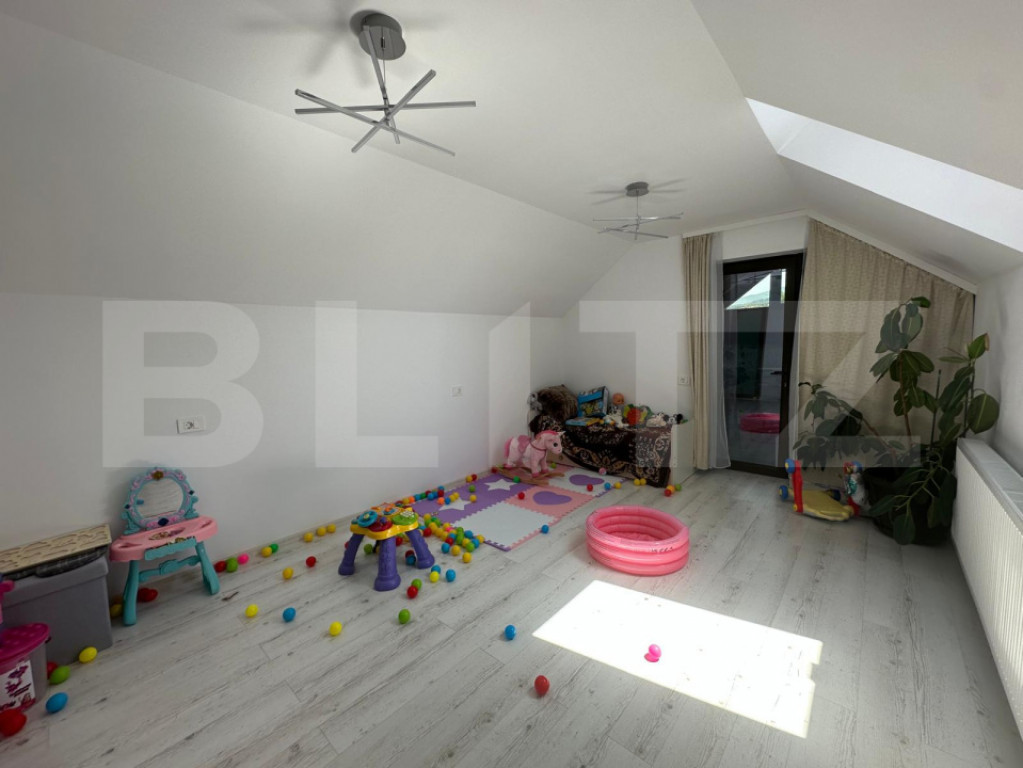 COMISION 0% la cumparator. Blitz Imobiliare va propune spre vânzare o casă spațioasă, eleganta, complet utilată, situată în centrul localității Purcăreni (13 km de Brasov), într-o zonă accesibilă, liniștită și cu vecinătăți bune. Proprietatea este ideală pentru o familie numeroasă sau pentru cei care își doresc o locuință modernă și bine întreținută, aproape de natură și totodată conectată la toate facilitățile. Casa poate fi recompartimentata pentru 3 apartamente cu intrari separate si independente. ✅ Detalii generale: Suprafață construită: 180 mp Teren / curte: 377 mp – pavată cu piatră cubică Construcție solidă cu finisaje de calitate ???? Utilități și dotări: Curent electric, apă, gaz, internet și televiziune Sistem profesional de supraveghere video Poartă de acces și poartă de garaj automatizate Interfon funcțional ???? Compartimentare: Parter: Living spațios Bucătărie complet echipată Dormitor Baie Hol Debara Garaj Beci Mansardă: 3 dormitoare 2 băi Hol Bucătărie secundară / Terasa acoperita ???? BONUS: Mobila se oferă gratuit, pentru cei interesați! ???? Pentru mai multe informații și vizionări, vă rugăm să ne contactați telefonic. Cod ofertă / ID BLITZ: P149777 Id intern: P149777