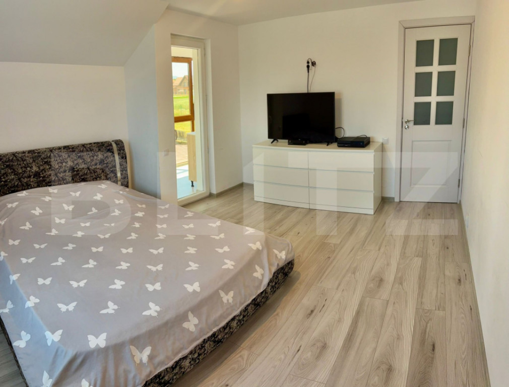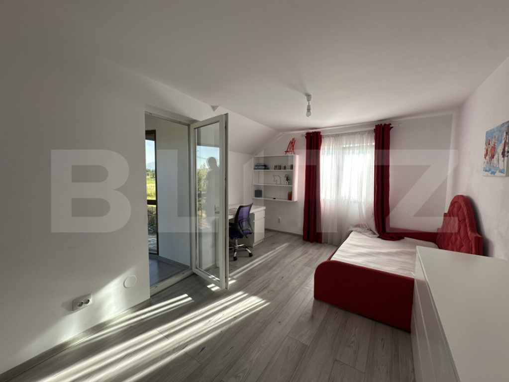Blitz va propune spre vanzare o casă familiala, modernă, eficientă energetic, situată în zona stadionului Hărman, foarte aproape de centrul comunei, magazine și facilități. Această proprietate oferă un mix ideal între confort modern, eficiență energetică și un teren generos. Caracteristici generale: ???? Suprafață utilă: 200 mp ???? Suprafață teren: 1.000 mp Compartimentare: ???? Parter: Living spațios de 53mp Bucătărie utilata complet Dormitor luminos si elegant Baie cu dus, complet utilată ???? Etaj: 3 dormitoare cu iesire pe balcon Baie modernă cu cada Dressing generos+cameră tehnică 2 balcoane Dotări și beneficii: ✅ Casă semipasivă, cu eficiență energetică ridicată ✅ Încălzire în pardoseală inclusiv în balcoane ✅ Panouri fotovoltaice de 10 kW – consum optimizat și costuri reduse ✅ Majoritatea sistemelor (inclusiv încălzirea) pot fi controlate direct de pe telefon ✅ Conectare completă la canalizare, apă, curent Exterior: ???? Zonă de gazon perfect întreținută ???? Livadă pe rod ???? Solar pentru legume ???? Magazie utilă pentru depozitare Pentru mai multe detalii sau pentru a programa o vizionare, nu ezitati sa ma contactati! Cod ofertă / ID BLITZ: P148452 Id intern: P148452