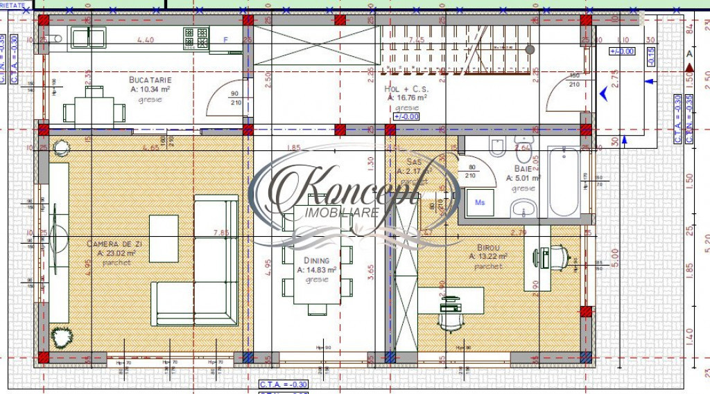 Koncept Imobiliare va ofera spre vanzare o casa spatioasa, finalizata in anul 2022, situata in cartierul Gheorgheni, una dintre cele mai apreciate zone din Cluj-Napoca, datorita accesibilitatii si mixului echilibrat intre zona rezidentiala si facilitati urbane. Proprietatea beneficiaza de o amplasare convenabila, intr-un cadru locuit, cu acces facil catre principalele puncte de interes ale orasului. Casa are o suprafata utila de 212 mp si este amplasata pe un teren de 291 mp, fiind dispusa pe un regim de inaltime P+1+Etaj retras. Compartimentarea este eficient gandita pentru a raspunde atat nevoilor unei familii, cat si pentru desfasurarea unor activitati profesionale. La parter regasim o camera de zi generoasa, un dormitor sau birou, zona de dining, bucatarie inchisa, baie si hol, oferind un spatiu functional si bine delimitat. Etajul este dedicat zonei de noapte si include un dormitor matrimonial de 27 mp cu baie proprie, un al doilea dormitor, dressing walk-in, balcon, baie si hol. Etajul retras completeaza proprietatea cu un dormitor suplimentar, dressing, baie, hol si o terasa circulabila impresionanta de 71 mp, ideala pentru relaxare sau amenajare zona de recreere. Imobilul este finisat si beneficiaza de dotari moderne precum incalzire in pardoseala, ferestre cu trei foi de sticla pentru eficienta energetica sporita si toate instalatiile trase pe pozitie. Exteriorul este complet amenajat, cu curte pavata, oferind un spatiu usor de intretinut si pregatit pentru utilizare imediata. Printre punctele forte ale proprietatii se remarca suprafata generoasa, compartimentarea versatila, terasa ampla cu potential de amenajare, constructia recenta si posibilitatea de utilizare mixta. Pozitionarea intr-o zona cautata, combinata cu flexibilitatea spatiului, face ca aceasta proprietate sa fie potrivita atat pentru locuinta proprie, cat si pentru activitati de birou precum cabinet notarial, avocatura, IT, proiectare sau contabilitate. Pentru informatii suplimentare, programarea unei vizionari sau pentru a afla oferta noastra completa va stam la dispozitie telefonic, prin e-mail sau la sediul agentiei noastre, pe str. Aviator Badescu, nr. 19, Cluj-Napoca. Id intern: P18916