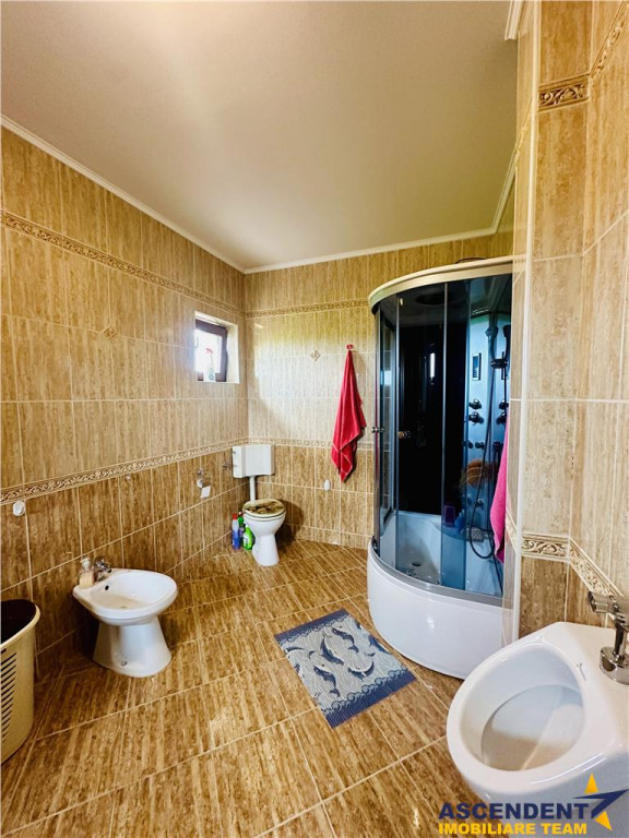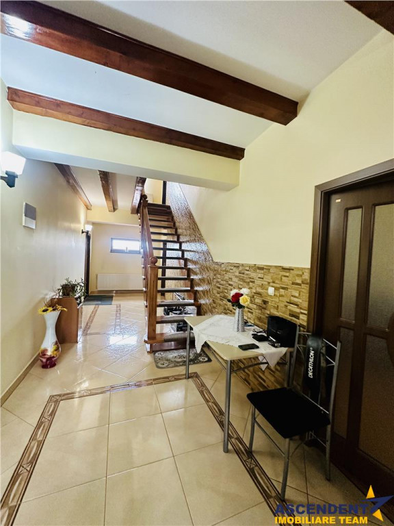 Comision cumparator 2% TVA din valoarea de tranzactionare ASCENDENT IMOBILIARE propune spre vanzare o frumoasa proprietate materializata printr-o vila deosebita, cu un design unic si o arhitectura moderna, mobilata si utilata premium, situata in Sanpetru, Brasov, la 5 minute de centrul orasului si de toate punctele de interes. Imobilul in suprafata de 264 mp utili si este amplasat pe un teren de 2389 mp, cu o curte frumos amenajata, cu o peisagistica aparte ce se remarca prin flori, plante ornamentale, arbusti, gazon rulat, iar imprejmuirea este din beton armate. Configuratia interioara dispune de o compartimentare dinamica si practica, cu spatii largi si insorite, foarte bine valorificate si se desfasoara astfel: - la parter: living generos si bucatarie open-space si o scara interioara superba, hol, baie de seviciu, camera tehnica, debara, sala de fitness. Terasa cu acces din living este un alt element de eleganta si utilitate, la parter proprietatea are 3 cai de acces dintre care doua cu terasa, camera centralei pe lemne si camera centralei pe gaz. - la etaj: remarcam un dormitor matrimonial cu baie proprie, dressing, dormitor cu acces pe balconul mare, dormitor secundar cu acces pe un balcon mic, baie generoasa, hol si dresing Consultant dedicat acestei oferte, Stramciuc Florentina Telefon/ WhatsApp: 0761730575 Detalii, fotografii suplimentare, precum si alte variante similare exclusive: www.ascendentimobiliare.ro