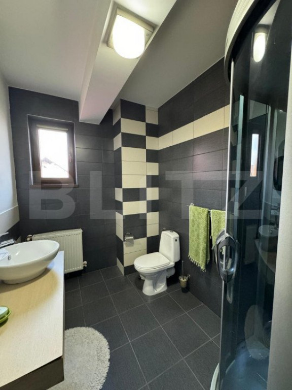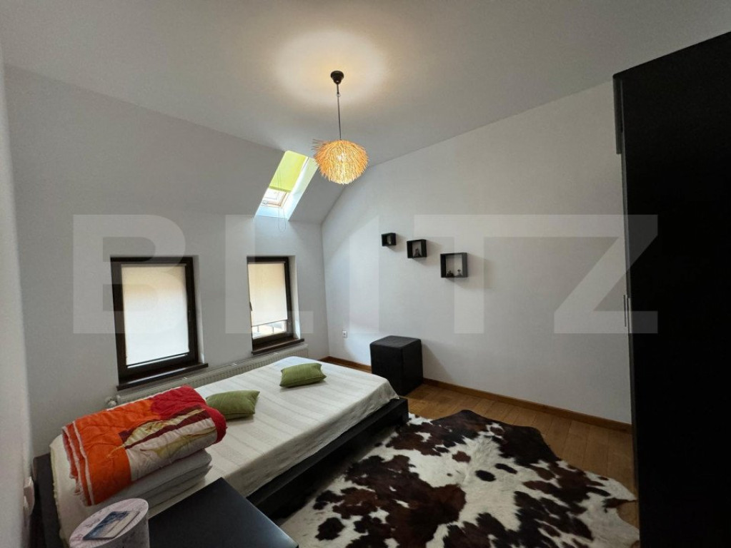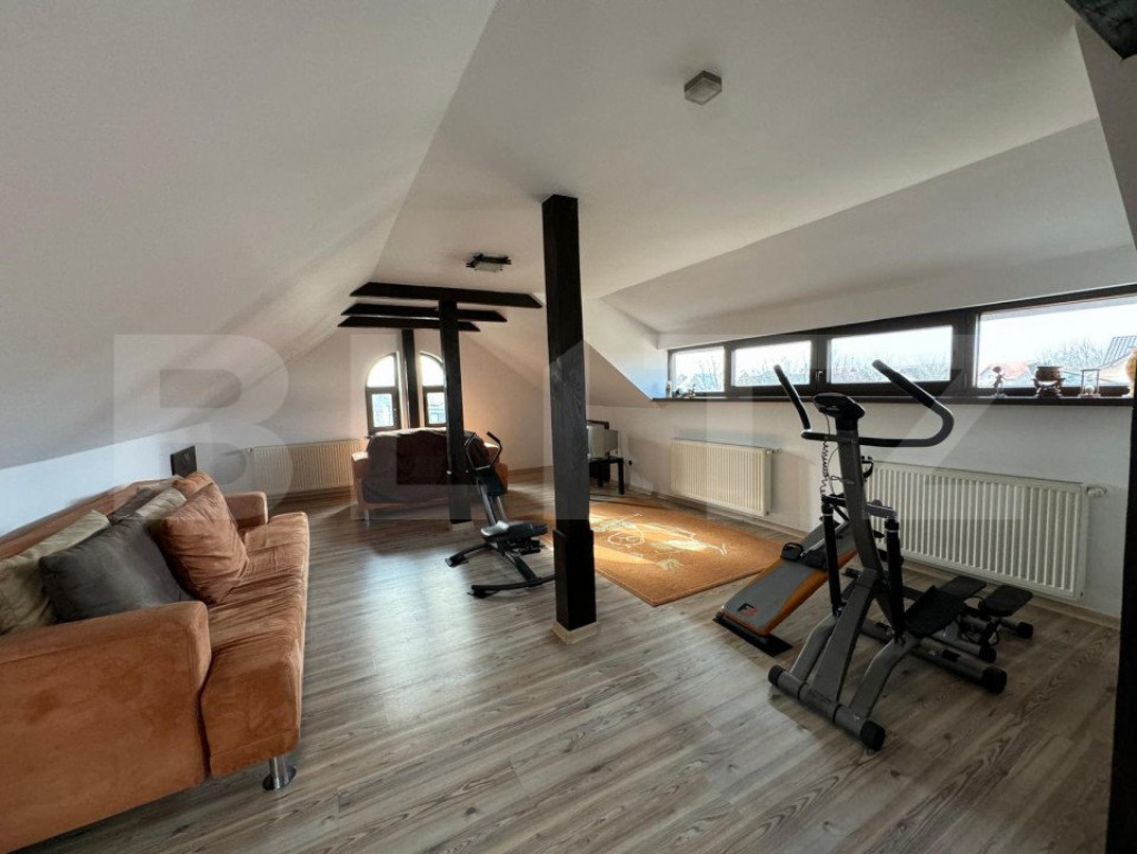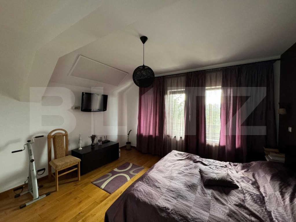 Blitz Imobiliare va prezinta acesta casă impresionantă, complet mobilată și utilată, este pregătită să-și găsească noul proprietar! Cu o suprafață construită la sol de 125 mp, proprietatea oferă spații generoase și bine compartimentate. - La parter, veți găsi un living spațios cu semineu, bucătărie modernă, un birou, o baie și camera centralei. - Etajul dispune de 2 dormitoare care împart o baie și un dormitor matrimonial cu dressing și baie proprie. - Mansarda este un open space ideal pentru o sală de sport, având și o saună cu baie inclusă. Pe lângă casă, există o anexă de 54 mp care include un garaj, beci, bucătărie, baie, cameră de zi, dormitor, dressing și balcon. Grădina este amenajată cu grijă, având pomi fructiferi, brazi argintii și un solar, oferind un spațiu perfect pentru relaxare și grădinărit. Această proprietate unică îmbină confortul modern cu natura, fiind ideală pentru o familie care își dorește un loc primitor și elegant. Pentru mai multe detalii nu ezitati sa ne contactati! Cod ofertă / ID BLITZ: P136086 Id intern: P136086