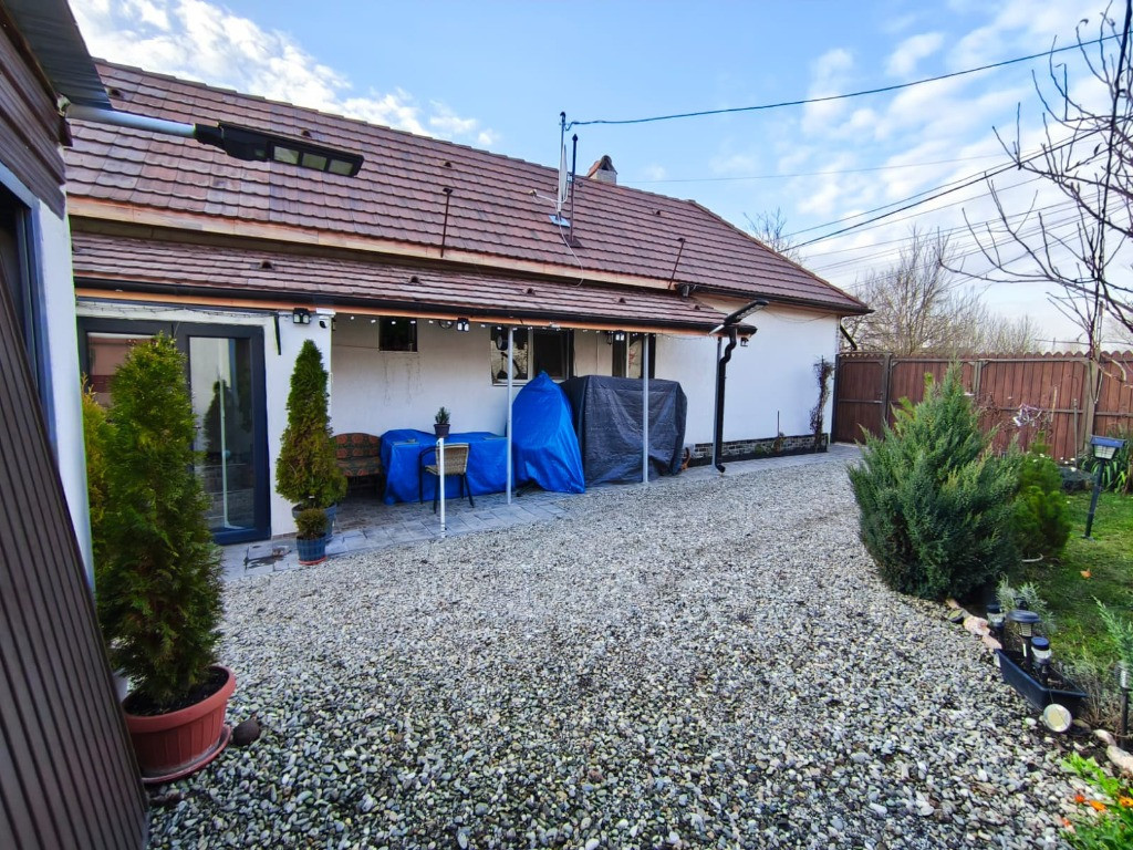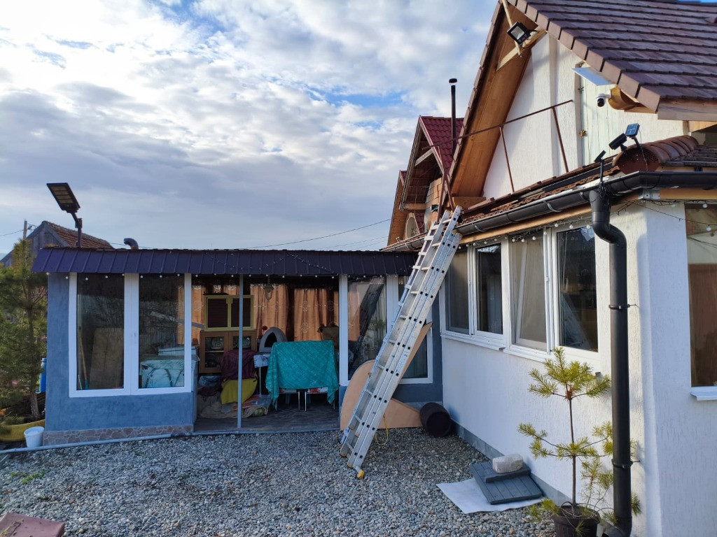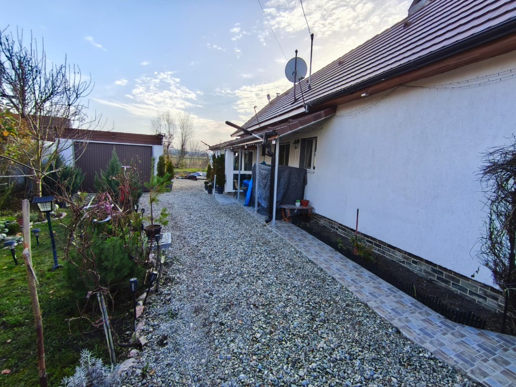 - Vand casa in Capeni, loc Baraolt, jud Covasna, cu teren in suprafata totala 629 m2 - Proprietate compusa din 2 camere, baie, bucatarie, hol, camara si pod - Incalzire pe baza de termosemineu pe peleti, conectat direct la caloriferele din camere, bucatarie si baie - Baie dotata cu boiler, alimentat atat de termosemineu cat si de panoul solar montat pe acoperis - Fantana proprie in curte ce asigura alimentarea cu apa a casei, fosa septica - Curtea dispune de garaj pentru automobil, si anexa ideala pentru bucatarie de vara, prevazuta cu gratar si plita - Curte amenajata cu pietris si pavata partial, gradina este potrivita pentru flori, pomi, legume si alte amenajari - Acoperis schimbat cu tigla noua, pod izolat cu vata de sticla si placi OSB - Pereti izolati cu polistiren de 10 cm, incaperile zugravite, geamuri termopan, sub parchet izolat cu polistiren extrudat - Poarta de acces si gardul imprejmuitor sunt noi - Contact vizitare: o762 617 965 / o740 865 249