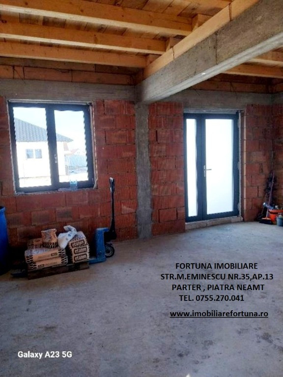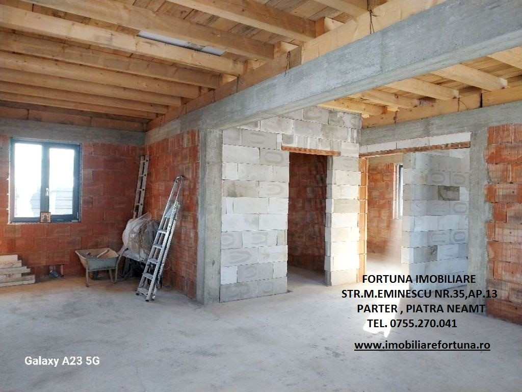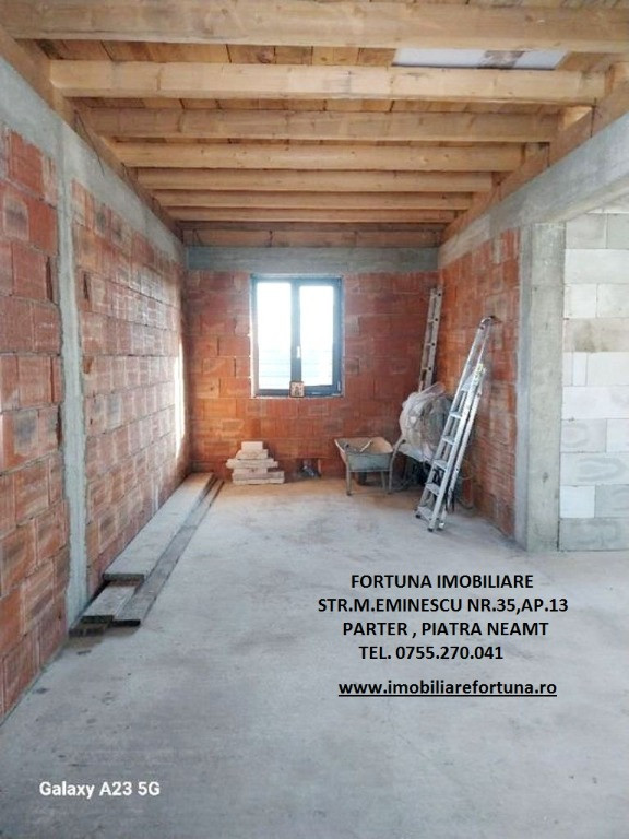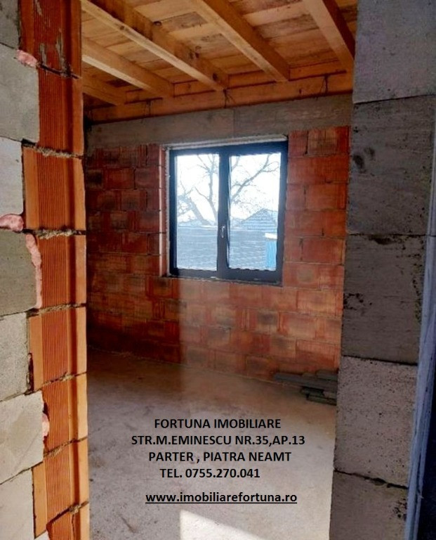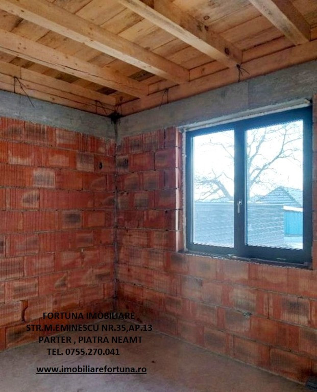 CASĂ ÎN CONSTRUCTIE ȘI TEREN 615 MP + 90 MP COTA DE DRUM, DUMBRAVA ROȘIE, 75.000 EURO NEG Oferim spre vânzare o proprietate compusă din suprafața de 615 mp teren + 90 mp cota de drum, pe care este edificată o casă construită în anul 2024, cu un singur nivel. Casa, cu suprafața de 90 mp, este compusă din living, 2 dormitoare, baie și bucătărie, având o înălțime interioară de 3m, ceea ce îi conferă un spațiu luminos si aerisit. Printre elementele de construcție se regăsesc: fundații din beton armat, zidărie din cărămidă Brikston, termosistem exterior și sub placă din polistiren EPS 80, beton de stație B 200, decorativă siliconată, termopane ADF cu 3 rânduri de sticlă, glafuri de marmură, căpriori din lemn la vedere 15X10 cm, care oferă un aspect rustic. Este acoperită cu tablă profilată Bilka antracit RAL 7016 cu grosimea de 0,5 mm, model gotic. Curentul electric, apa și gazul sunt în fața proprietății. Terenul este drept, pe o latură are gard nou pe structură metalică, cu fundație și elevație din beton armat. Preț: 75.000 euro, ușor negociabil, în stadiul actual, iar pentru construcția finalizată prețul este discutabil în funcție de preferințele clientului. Pentru o prezentare detaliată a acestei oferte, vizualizarea proiectului arhitectural, furnizarea unor informații suplimentare referitoare la situația juridică / identificarea imobilului și programarea unei vizionări, vă invităm la sediul nostru, Fortuna Imobiliare, situat pe str. M. Eminescu, nr. 35, ap. 13, parter, lângă fostul Tribunal, tel. contact 0755.270.041. Your comfort is our priority ! Oferta noastră completă o găsiți aici: https://imobiliarefortuna.ro/