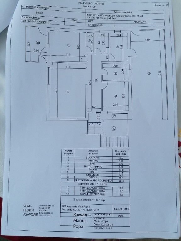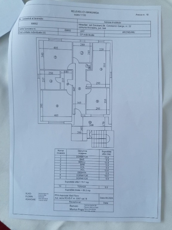 Vând casă În Dorobant ( zonă metropolitană, 8km până în Tg Cucu) 253mp P+M+Pod de tip familial din cărămidă construită în anul 2012 izolată cu polistiren de 10cm, formată din 2 ap decomandate cu intrări separate, unul la parter și unul la mansardă. Suprafața terenului este de 1196mp cu livada de pomi fructiferi, teren arabil,solar, piscină, gazon și 2 locuri de parcare în curte. Apartamentul decomandat de la parter are acces frontal cu terasa și este format din: - Hol lung - Living generos - Dormitor - Dressing - Bucătărie cu debara și cu ieșire pe terasă închisă - Baie - Camera tehnică cu ieșire pe terasă/garaj semideschis Inaltimea aparatamentului este de 2.55m. Apartamentul decomandat de la mansardă are acces frontal printr-o scară exterioara cu terasă generoasă și este format din: - Hol lung - Dormitor matrimonial cu hol și baie - Dormitor - Baie pe hol - Debara hol - Bucătărie - Dormitor Înălțimea minimă a mansardei este de 1.70m și maximă de 2.35m. Podul - Accesul se face de pe holul apartamentului de la mansardă printr-o scară rabatabilă. - Spațiul de depozitare total este de 60 mp iar înălțimea maximă 2m cu un geam în fața casei și unul în spate - Acoperișul este din tablă Lindab căptușit cu scândură, vată minerală cu folie de aluminiu și OSB. Utilități: energie electrică, apă potabilă, canalizare, încălzire apă caldă cu centrală termică pe lemne și cărbuni, boiler electric și boiler solar, stradă asfaltată, transport public metropolitan. Gazul se află la 50m de limita proprietății. Pret: 270 000€ Tel. 0741637084 / 0743035490