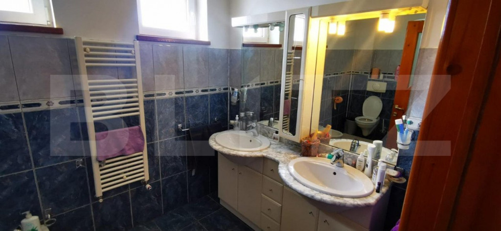 Blitz va propune spre vanzare o casa situata in una dintre cele mai frumoase localitati din jurul Brasovului, Harman. Imobilul este situat intr-o zona foarte buna, aproape de centrul localitatii, de magazine si de punctele de interes ale zonei. Dispune de 4 dormitoare, 3 bai, living, bucatarie, birou, 2 pivnite si garaj. Imobilul se afla pe un teren de 1000 mp, bogat in pomi fructiferi in partea din spate, iar in partea din fata a casei, proprietarii care sunt oameni extrem de gospodari, au imbogatit curtea cu flori multicolore. Avem 340 mp, iar compartimentarea este urmatoarea: -Demisol ; pivnita + garaj - Parter - hol, casa scarii, un living extrem de luminos, bucatarie cu iesire pe terasa, baie, intrarea in pivnita si un birou. - Etaj - 4 dormitoare mari si luminoase, unul dintre ele avand si dresing si o baie. Imobilul este construit din caramida si izolat cu polistiren extrudat de 5 cm, intre etaje avem placa fonoizolanta si termica, geamuri de termopan. Imobilul se vinde partial mobilat. Piesa de rezistenta a acestei case ; Sunt montate 16 panouri fotovoltaice , putere 7,4 kw / ora, deci este independenta energetica. Daca iti doresti un imobil foarte spatios si luminos intr-o zona superba, nu ezita sa ne contactezi. Cod ofertă / ID BLITZ: P4450 Id intern: P4450