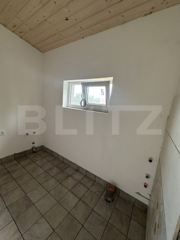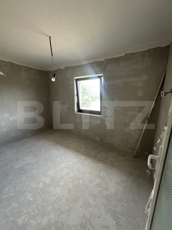 Blitz oferă spre vânzare o casă situată în localitatea Lazuri, într-o zonă liniștită, ferită de aglomerație, ideală pentru cei care își doresc un cămin modern, confortabil și cu acces rapid către oraș, dar cu avantajele traiului într-un mediu curat și aerisit.Casa este construită pe un singur nivel (plan parter), din cărămidă, având o suprafață utilă de 112 mp și este amplasată pe un teren de 450 mp, care oferă suficient spațiu pentru grădină, loc de joacă, relaxare sau extindere ulterioară.Compartimentarea este bine gândită și funcțională, compusă din trei dormitoare,un living spațios cu bucătărie open space, doua băi,o cămară,o cameră tehnică si o terasă din lemn, acoperită, ideală pentru momente de relaxare.Locuința se vinde în stadiu semifinisat, fiind gletuită integral, ceea ce oferă avantajul de a fi personalizată și finisată după gustul noului proprietar.Casa este dotată cu încălzire în pardoseală, geamuri și uși din profil Rehau (PVC de calitate superioară, cu izolare eficientă), iar exteriorul este complet izolat cu polistiren de 10 cm. Acoperișul este prevăzut cu pod izolat și podit cu scândură, oferind spațiu suplimentar de depozitare. Proprietatea este racordată la toate utilitățile necesare: apă, canalizare, curent trifazic. Este o locuință solid construită, cu structură sănătoasă și lucrări realizate cu materiale de calitate, care poate fi finisată relativ ușor și transformată într-o casă complet funcțională și confortabilă, gata să devină un cămin primitor pentru o familie sau un cuplu. Cod ofertă / ID BLITZ: P148147 Id intern: P148147