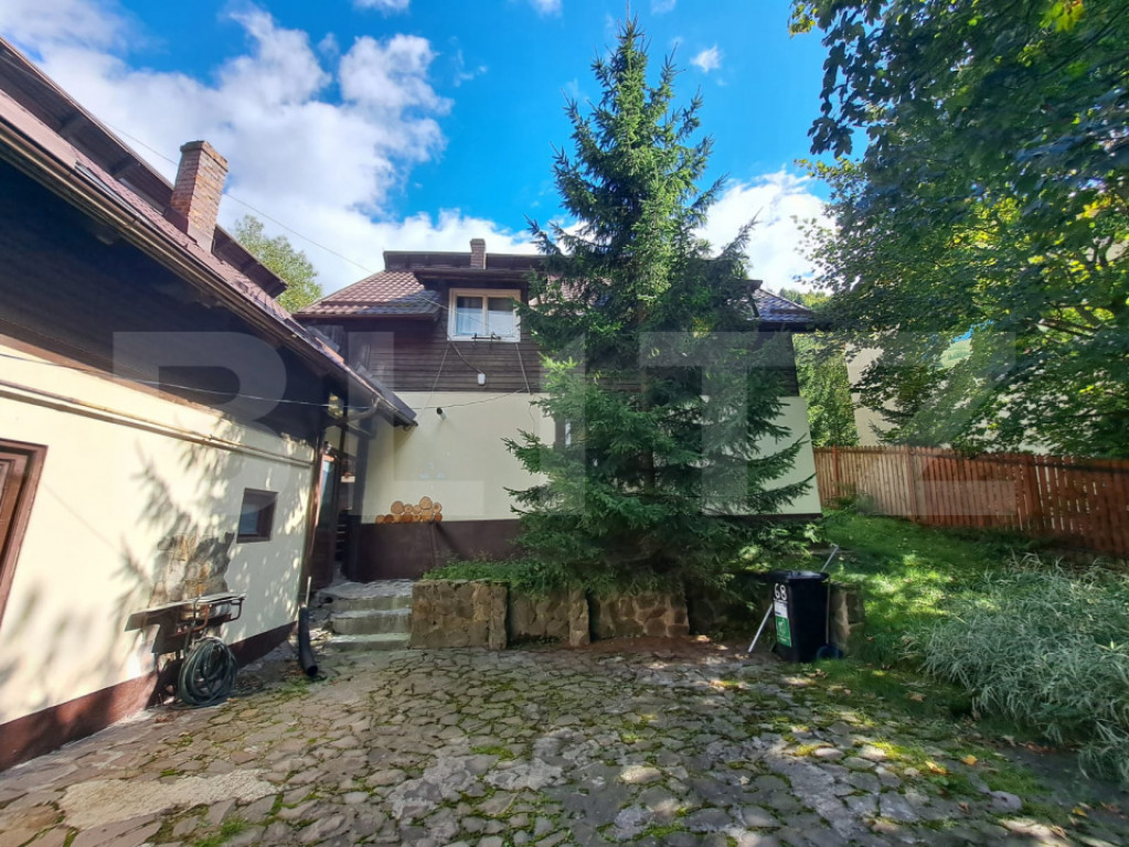 Pensiune / Proprietate turistică Moieciu – 2 corpuri, teren cu izvor propriu De vânzare proprietate deosebită în Moieciu, amplasată chiar pe DN 73F, cu acces facil și potențial ridicat de investiție în turism sau rezidențial. ???? Două corpuri de clădire (P+M+Pod): Corp 1 (112 mp): living, 6 dormitoare, bucătărie, debara, 3 băi, pivniță. Corp 2 (101 mp): living, 3 dormitoare, bucătărie, cămară, 2 băi. ???? Facilități & dotări: Izvor propriu cu hidrofor + curte traversată de apă curgătoare. Racord la electricitate, internet, supraveghere video, firmă de pază. Gaz: Corp 2 racordat, Corp 1 cu aviz obținut. Canalizare: momentan fosă septică, urmează racordarea la rețea publică (proiect finalizat de autorități). Curte amenajată cu brazi, vegetație montană și loc de grătar. ???? Avantaje investiționale: Proprietatea a funcționat ca pensiune („La Izvoare”) – cunoscută și apreciată. Poate fi reinclusă rapid în circuitul turistic. Zonă turistică premium: Bran, Râșnov, Cheile Grădiștei, Piatra Craiului, Bucegi. ???? Interior rustic, specific de cabană montană. Corpul 2 locuibil imediat, Corpul 1 necesită reparații majore sau demolare ???? Preț avantajos pentru zonă. Ideal pentru pensiune, casă de vacanță sau reședință permanentă. Cod ofertă / ID BLITZ: P153409 Id intern: P153409