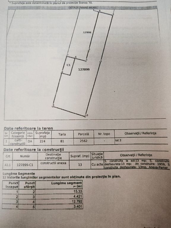 VA PROPUNEM SPRE VANZARE O CASA DIN CARAMIDA SI CURTE, CU SUPRAFATA TOTALA CONSTRUITA DE 89,7 MP, CU ANEXE DE 13MP SI TEREN UTILIZABIL, DE 224 MP, CONSTRUITA IN ANUL 1959 SI CONSOLIDATA ULTERIOR. CASA ESTE SEMIDECOMANDATA SI ESTE FORMATA DIN DOUA CAMERE, BUCATARIE, DRESSING, HOL, BUCARATIE, BAIE, SPATIU DEPOZITARE SI TERASA INCHISA. CASA ESTE SITUATA IN ZONA CENTRALA A ORASULUI POPESTI LEORDENI, ESTE IZOLATA TERMIC, ARE INCALZIRE CU CENTRALA PROPRIE, SE VINDE MOBILATA SI UTILATA.