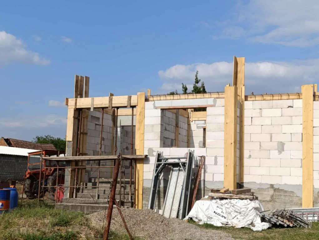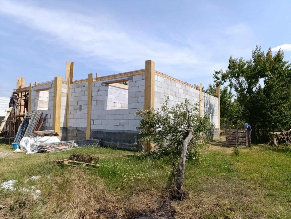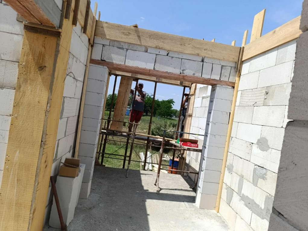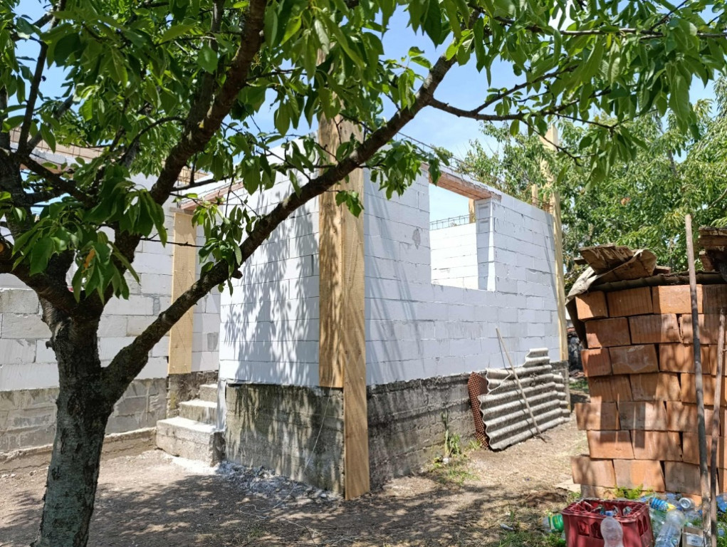 Casa ridicată în rosu construita din BCA,terenul are o suprafață de 501 mp. Casa are un proiect formată din 3 camere spațioase,living,hol, bucătărie cu ieșire în curte,baie și un mic dressing plus sub baie se afla o pivniță. Actele sunt la zi și este apa trasa .