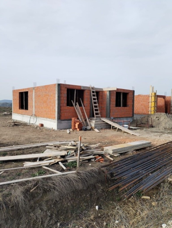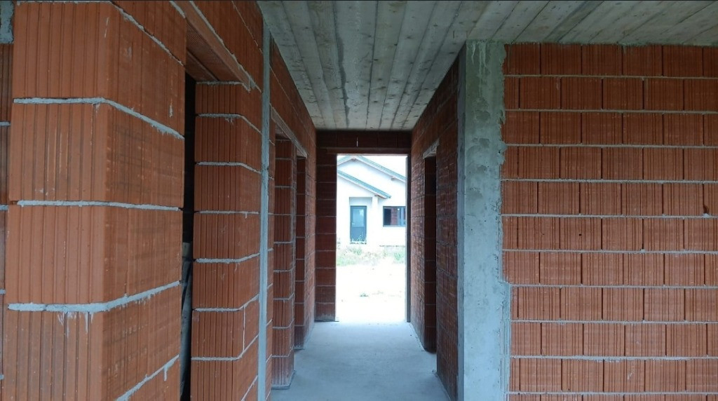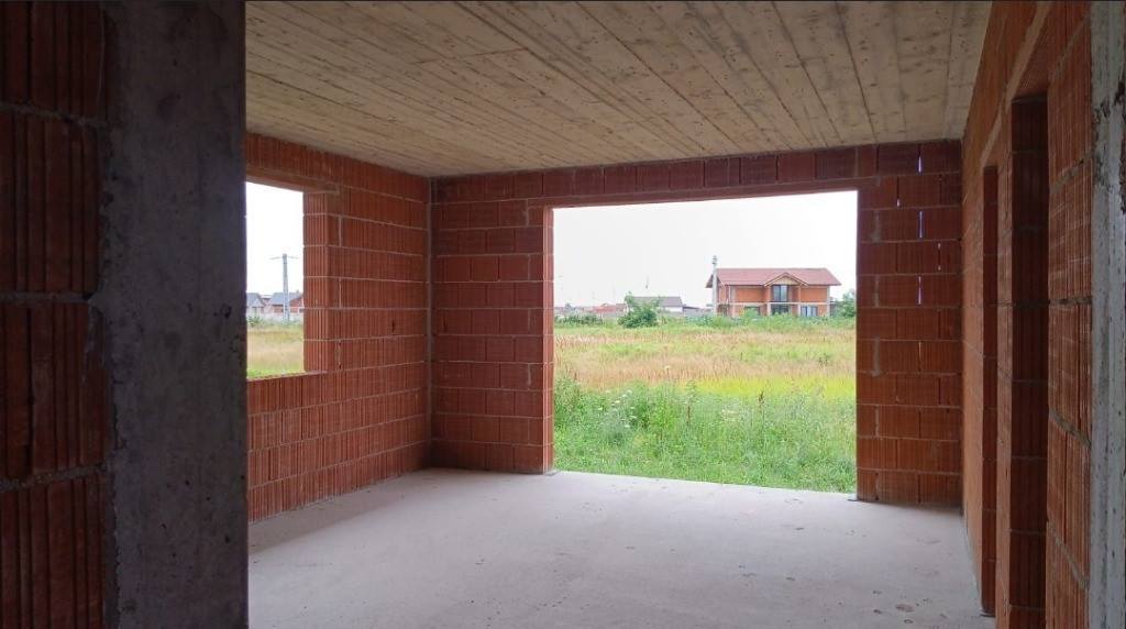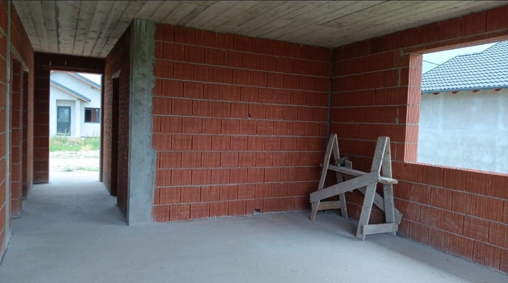 Casa este construită din cărămidă Poroton. Are 3 dormitoare 2 băi, bucătărie open space, hol de intrare, planșeu de beton ceea ce îi oferă rezistență sporită și durabilitate. Se afla într-un cartier rezidențial de case noi.